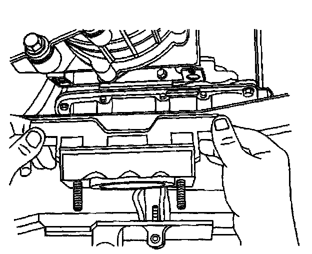 5. Raise the transmission assembly just high enough to remove the transmission mount.