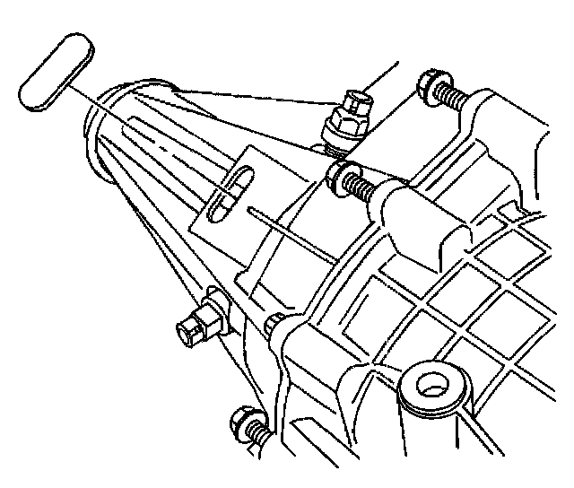 18. Remove the transfer case retaining bolts and washers. Mark the location of any brackets.
