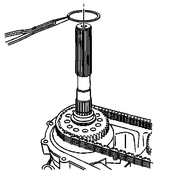 22. Insert a pair of snap ring pliers and release the outer retaining ring for the rear output shaft bearing.