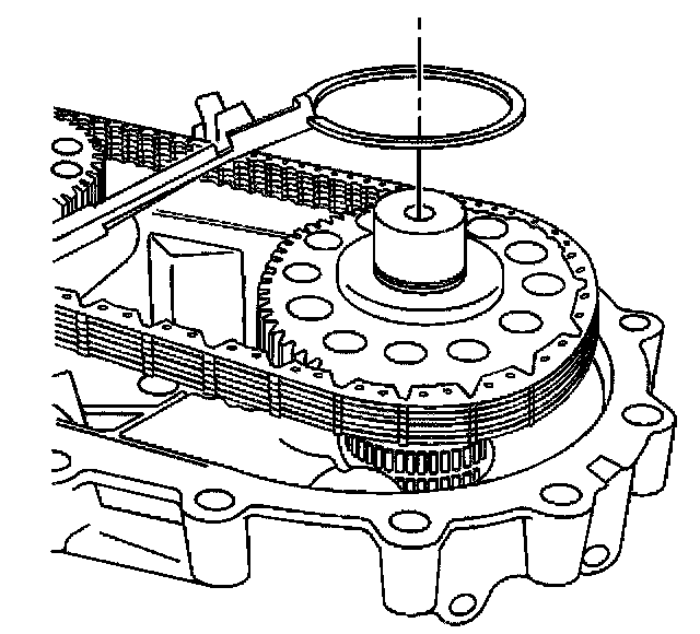40. Remove the clutch assembly retaining ring. Push down on the clutch pressure plate to access the retaining ring.