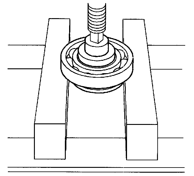 45. If the bearing is faulty, using a hydraulic press and a suitable adapter, remove the clutch pressure plate bearing from the clutch pressure plate hub.