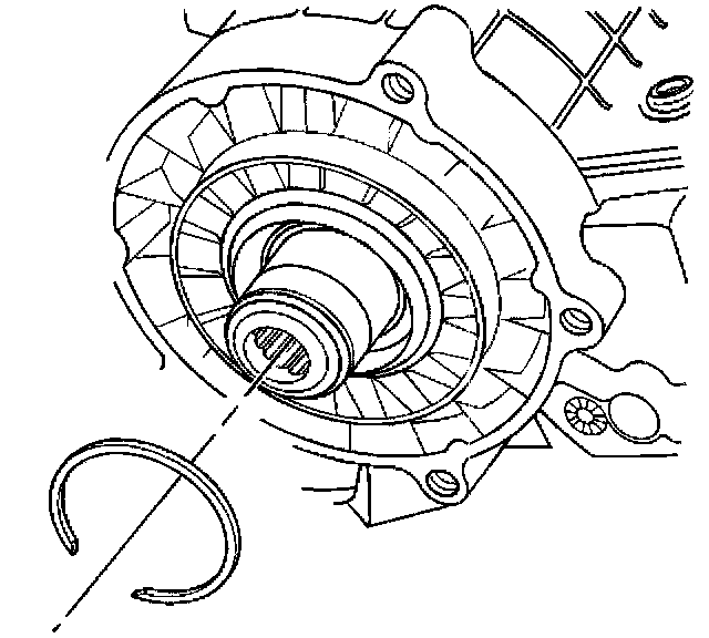 24. Remove the rear output shaft rear bearing retaining ring.