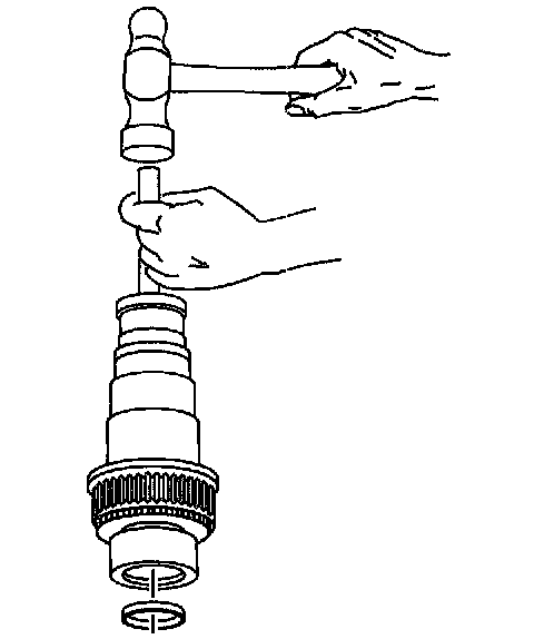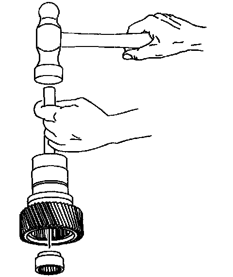 58. If the bearing is faulty, use a brass drift and a hammer to remove the bearing.