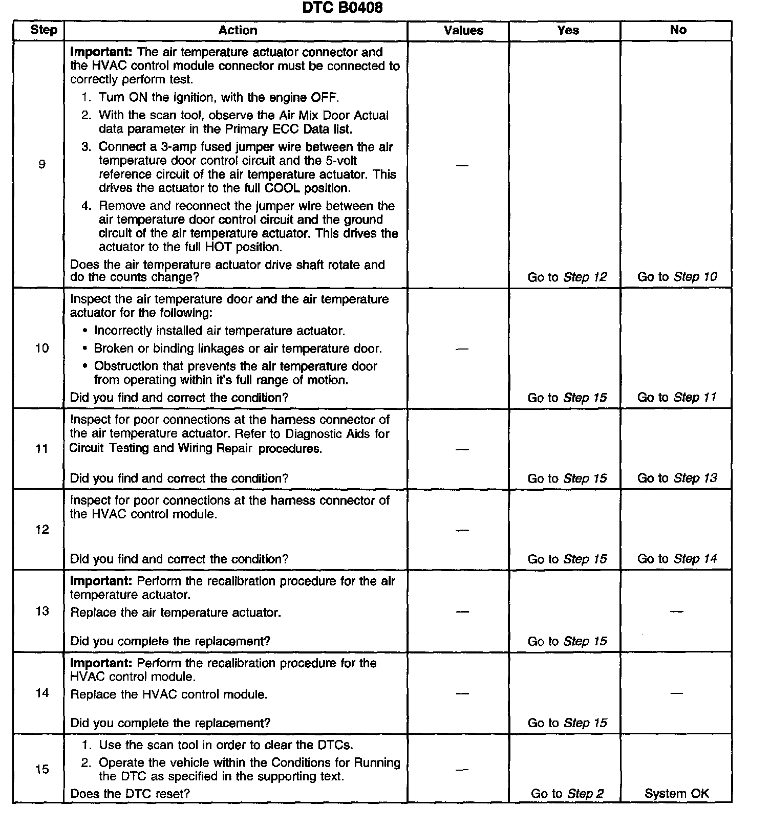 - A damaged air temperature door, a damaged actuator, a broken air temperature door, or a broken actuator can cause this DTC to set.