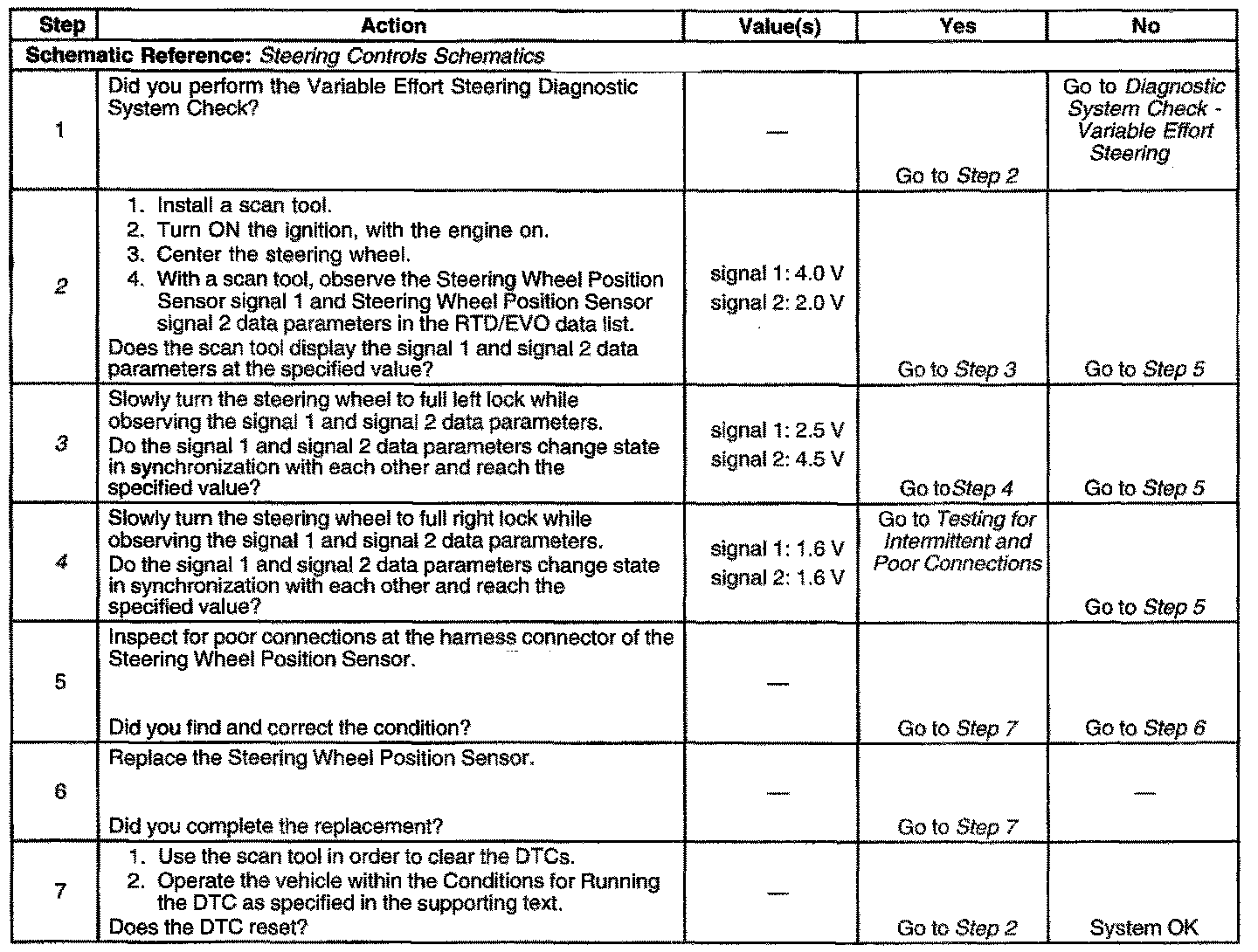 2. Tests if the malfunction exists in the Steering Wheel Position Sensors centered position.