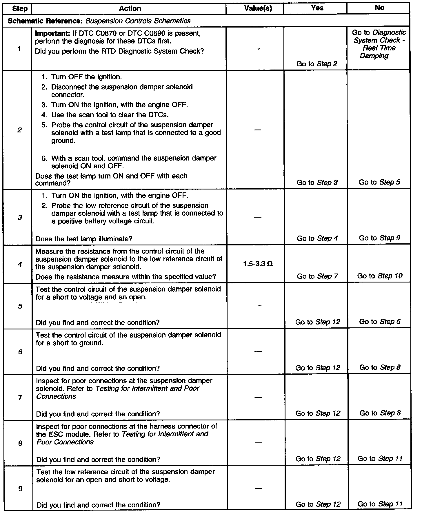The ESC module performs a test on each suspension damper solenoid during both the ON and OFF states.