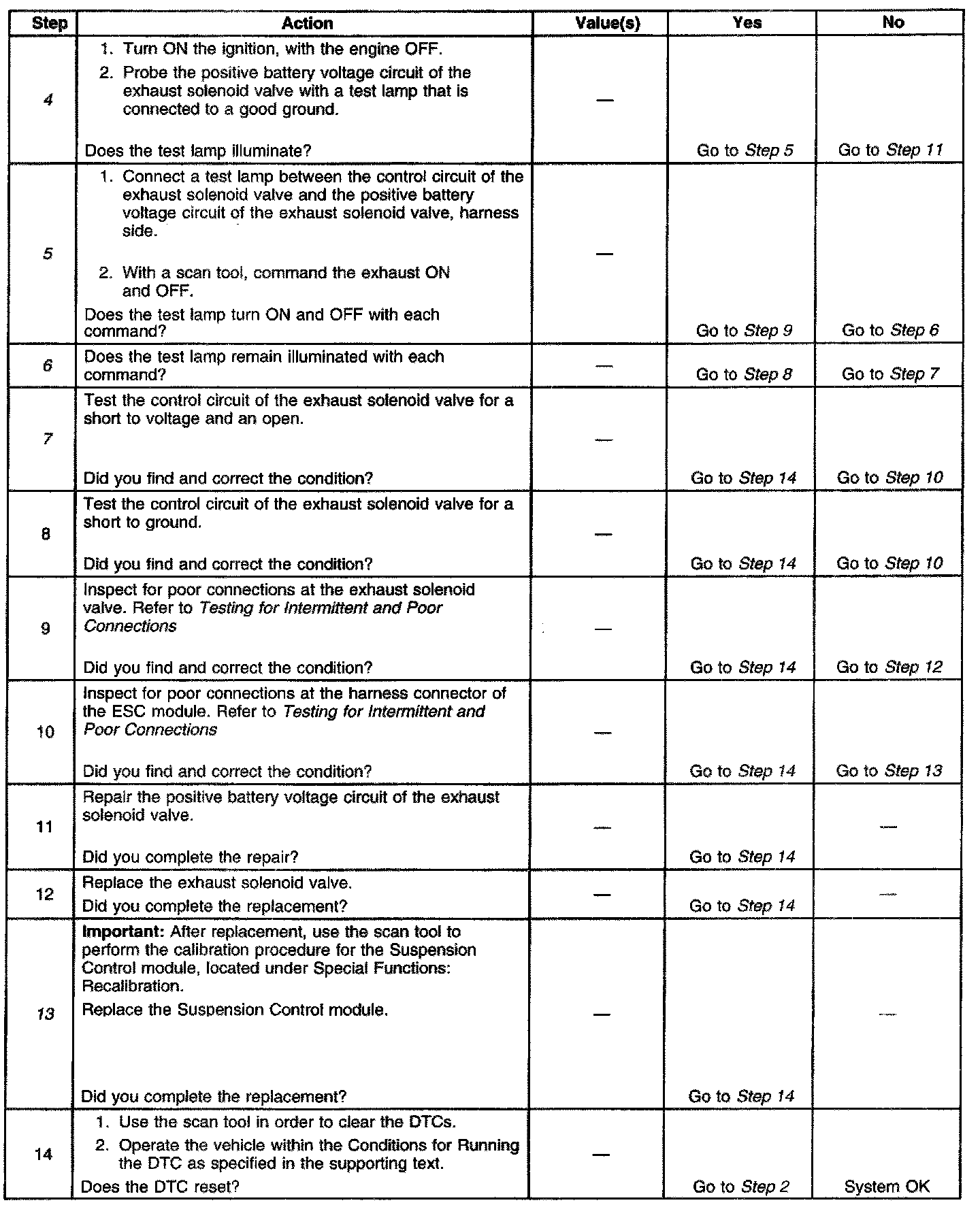 ^ The Suspension Control module no longer detects a open, short to ground, or a short to battery in the control circuit of the exhaust solenoid valve.