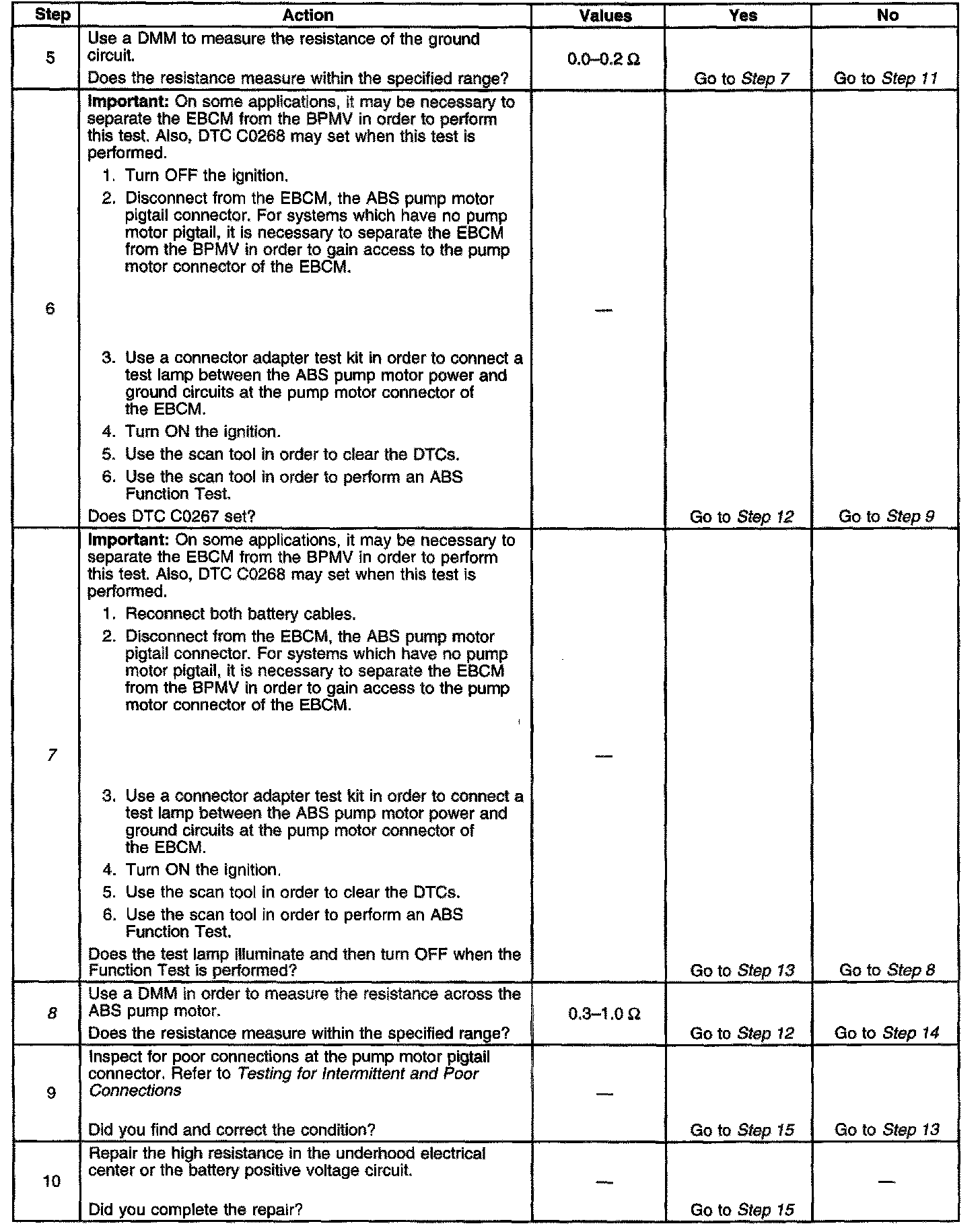 7. This step tests if the EBCM is capable of activating the ABS pump motor.