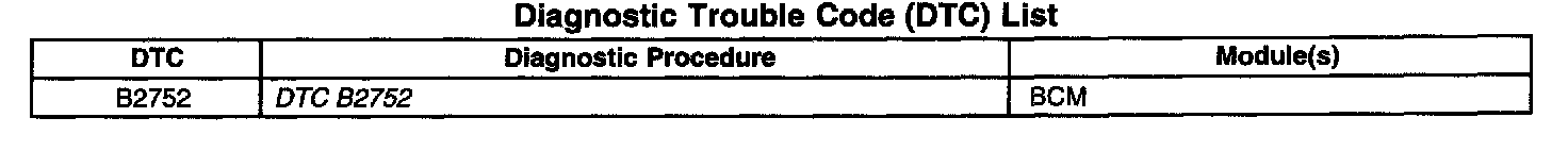 Diagnostic Trouble Code (DTC) List:
