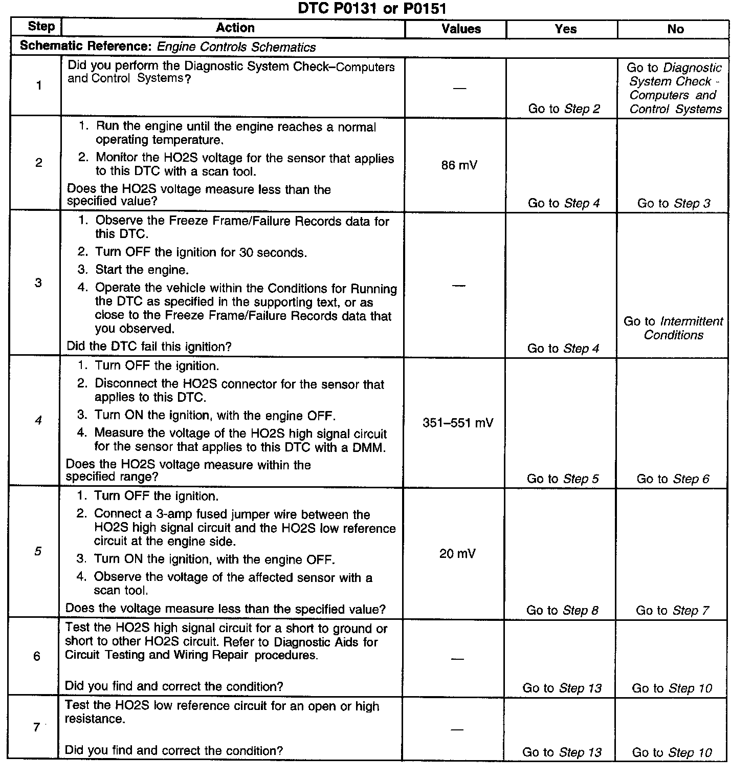 The numbers below refer to the step numbers on the diagnostic table.