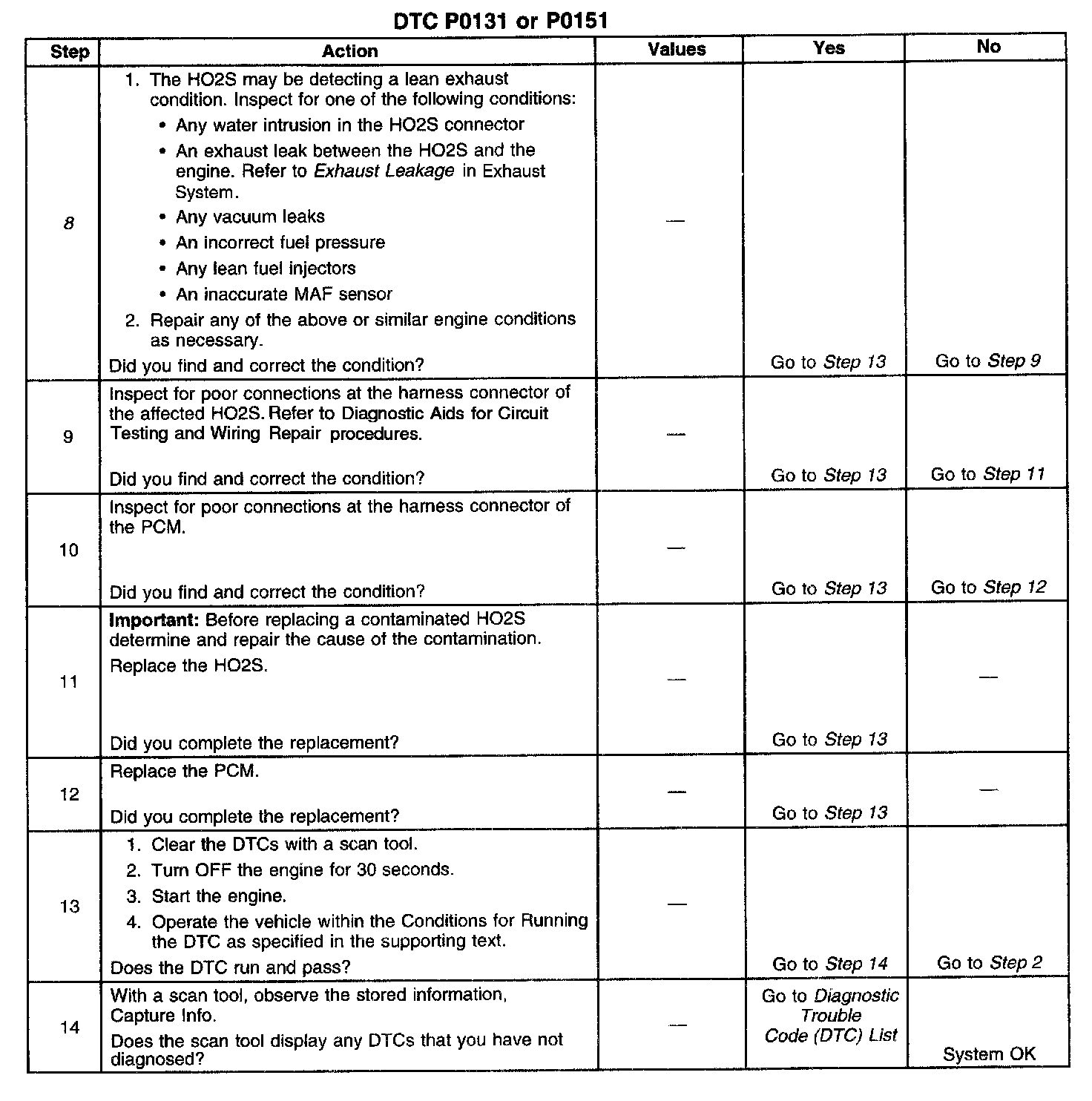 ^ DTCs P0101, P0102, P0103, P0106, P0107, P0108, P0112, P0113, P0116, P0117, P0118, P0200, P0300, P0351-P0358, P0400, P0401, P0404, P0405, P0410, P0440, P0442, P0443, P0446, P0449, P0452, P0453, P1120, P1125, P1220, P1221, P1258, P1404, P1441, P1514, P1515, P1516, P1517, or P1518 are not set.