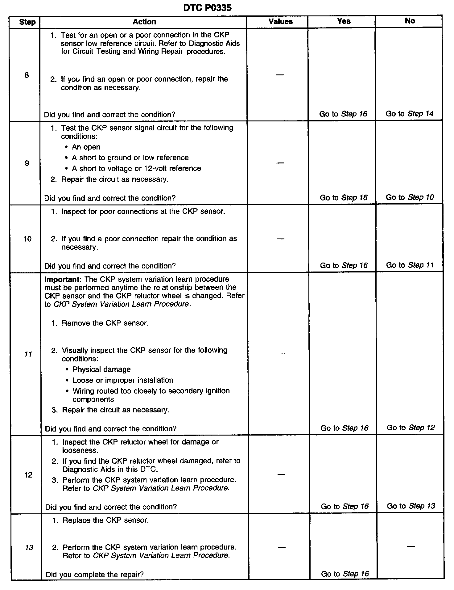 13. The CKP system variation learn procedure must be performed anytime the relationship between the CKP sensor and the CKP reluctor wheel is changed.