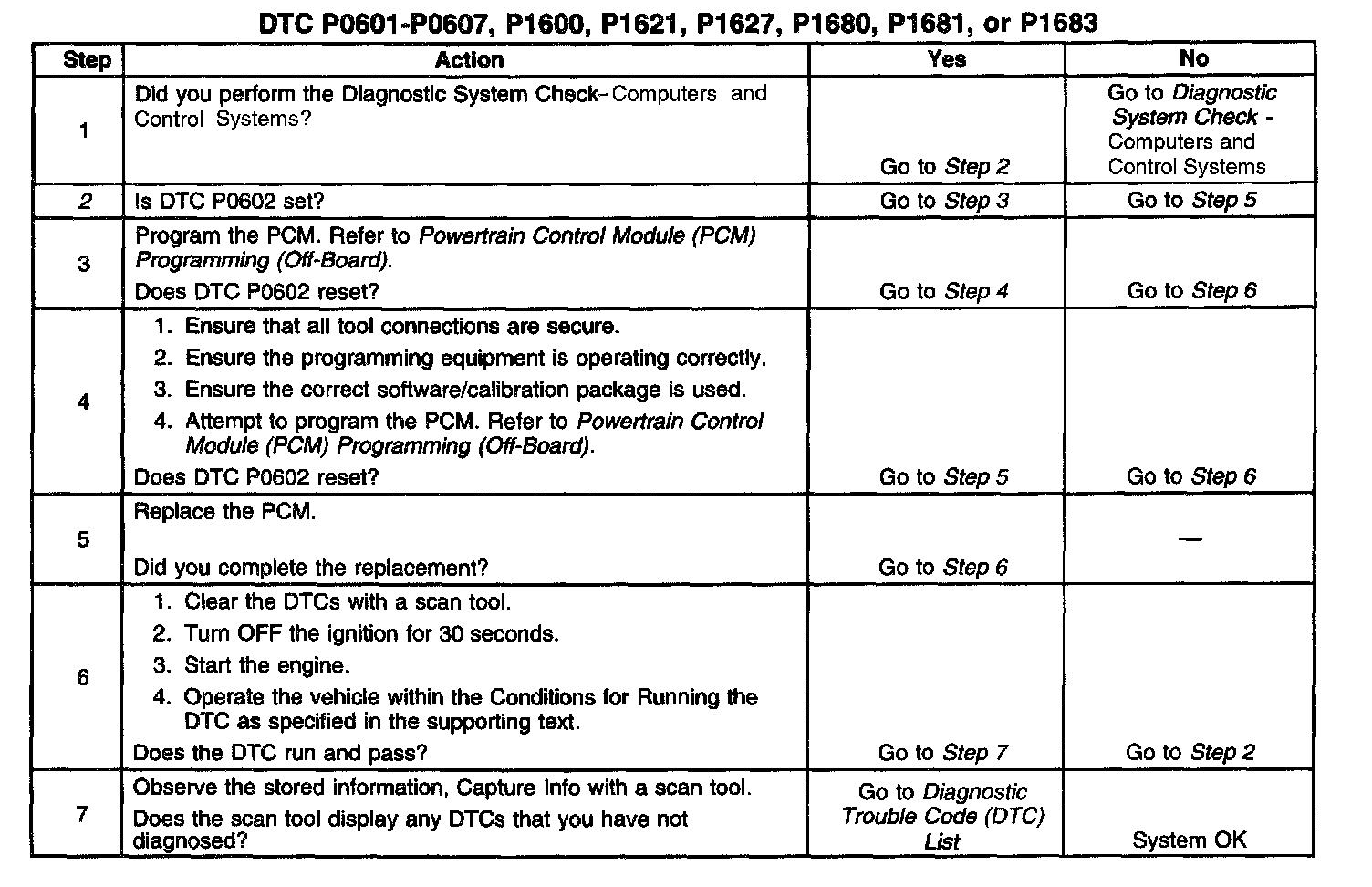 2. A DTC P0602 indicates the PCM is not programmed.