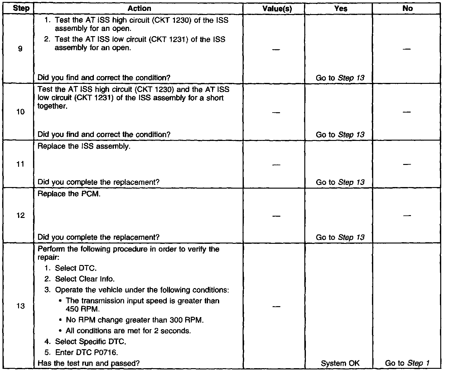 ^ The PCM stores the DTC P0716 in PCM history during the second consecutive trip, California, or the first trip, Federal in which the Conditions for Setting the DTC are met.