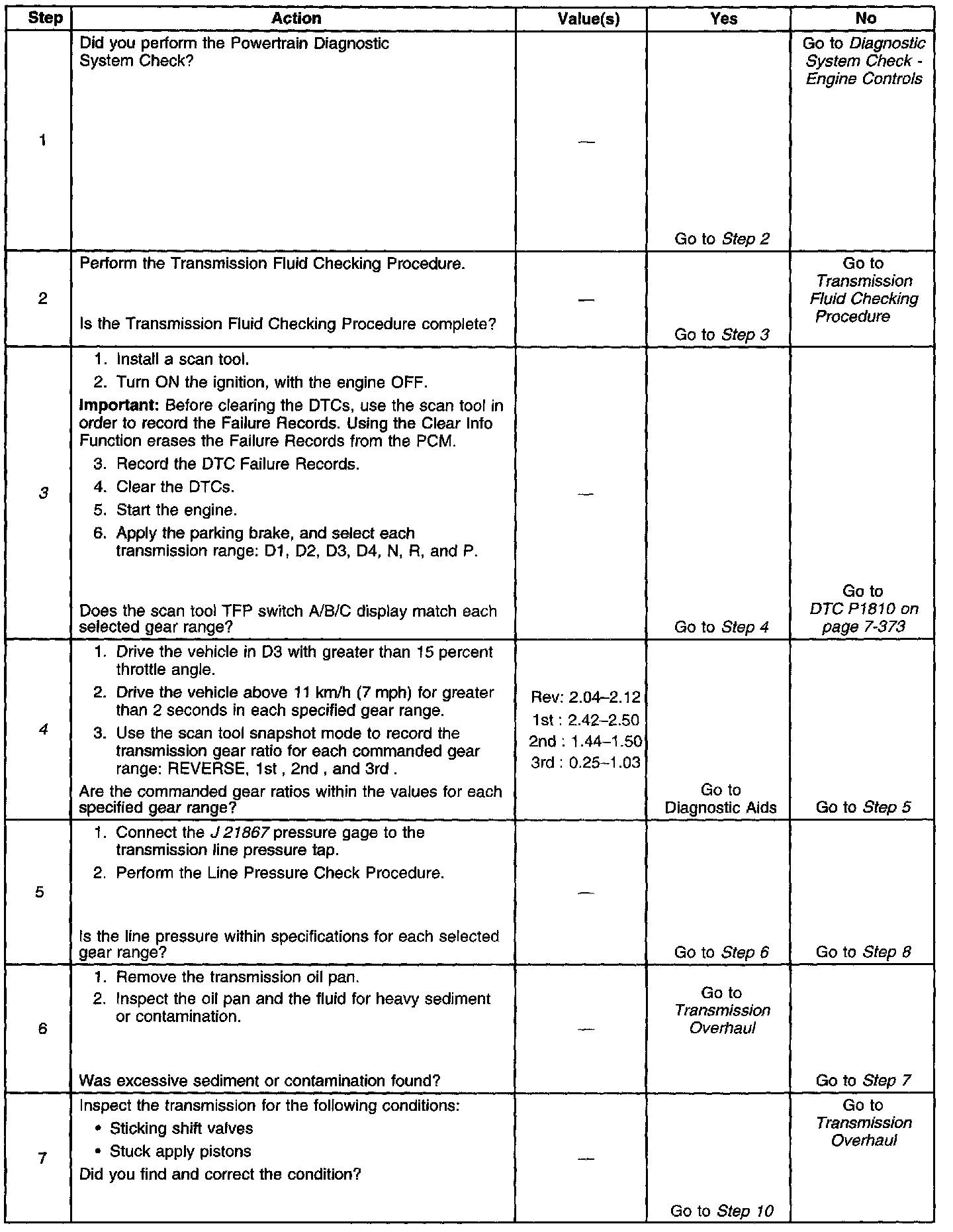 3. This step tests the indicated range signal to the actual selected range. A faulty TFP manual valve position switch could set DTC P1810.