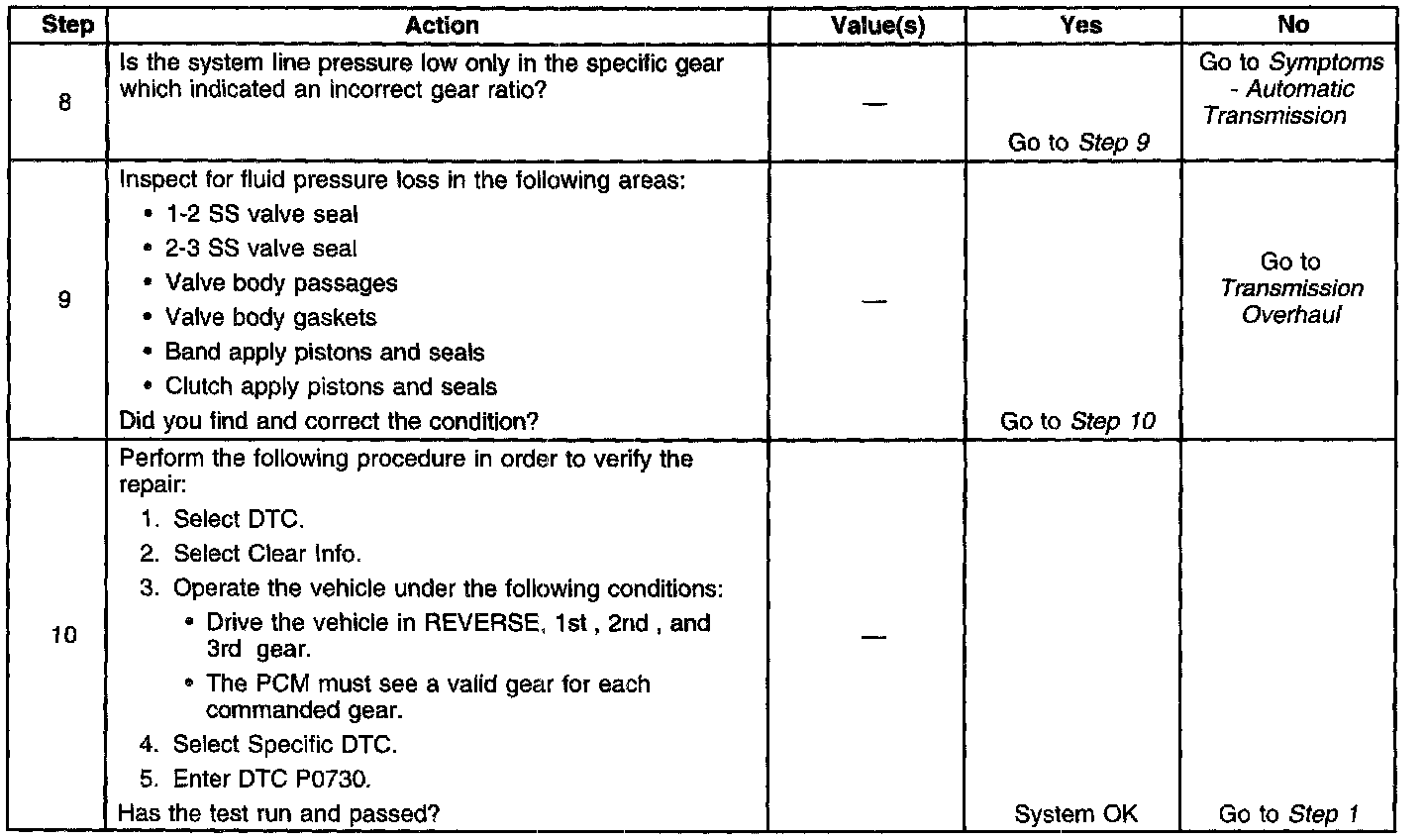 ^ DTC P0730 defaults to an elevated line pressure condition which may result in partial TCC apply.