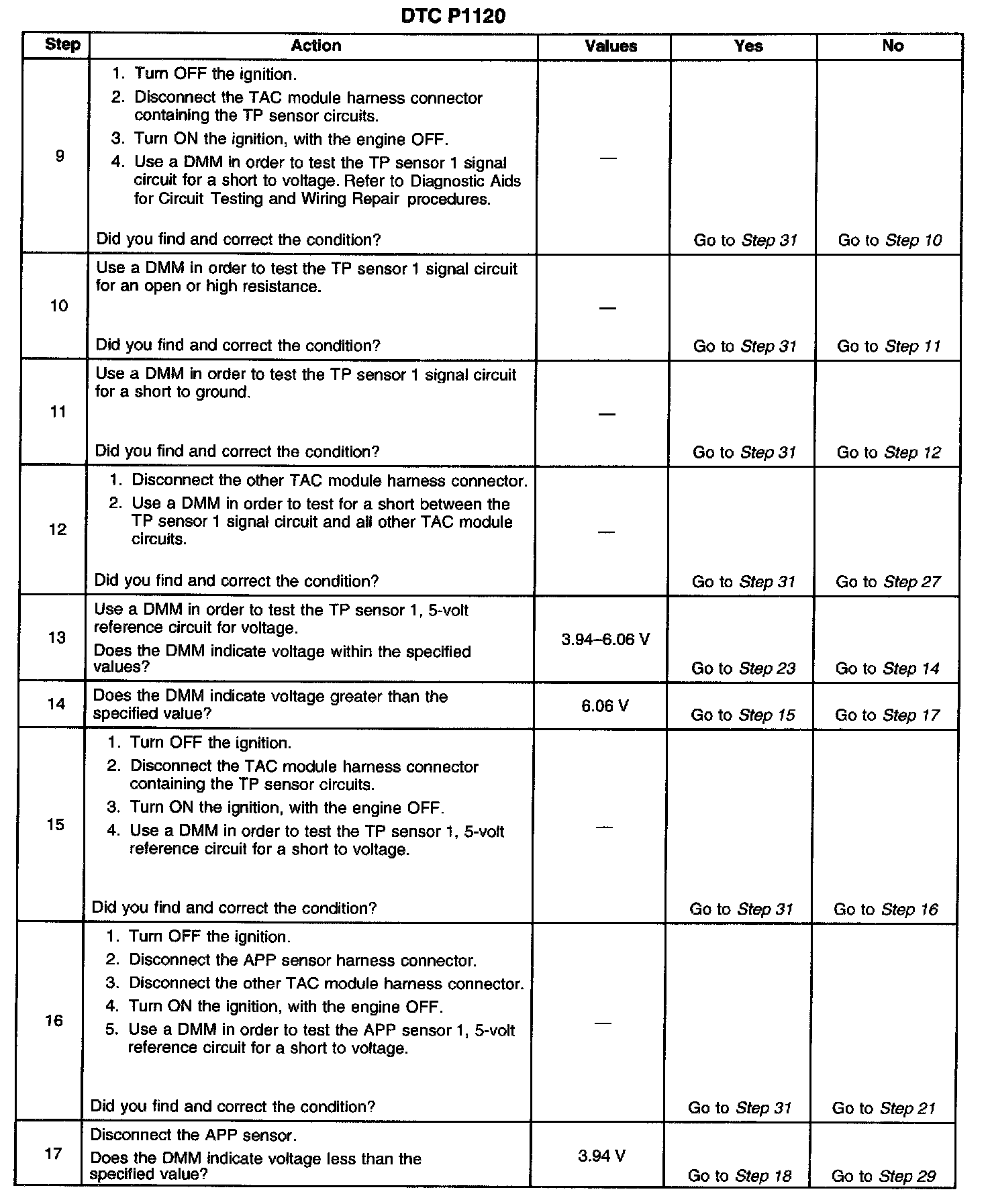 The number below refers to the step number on the diagnostic table.