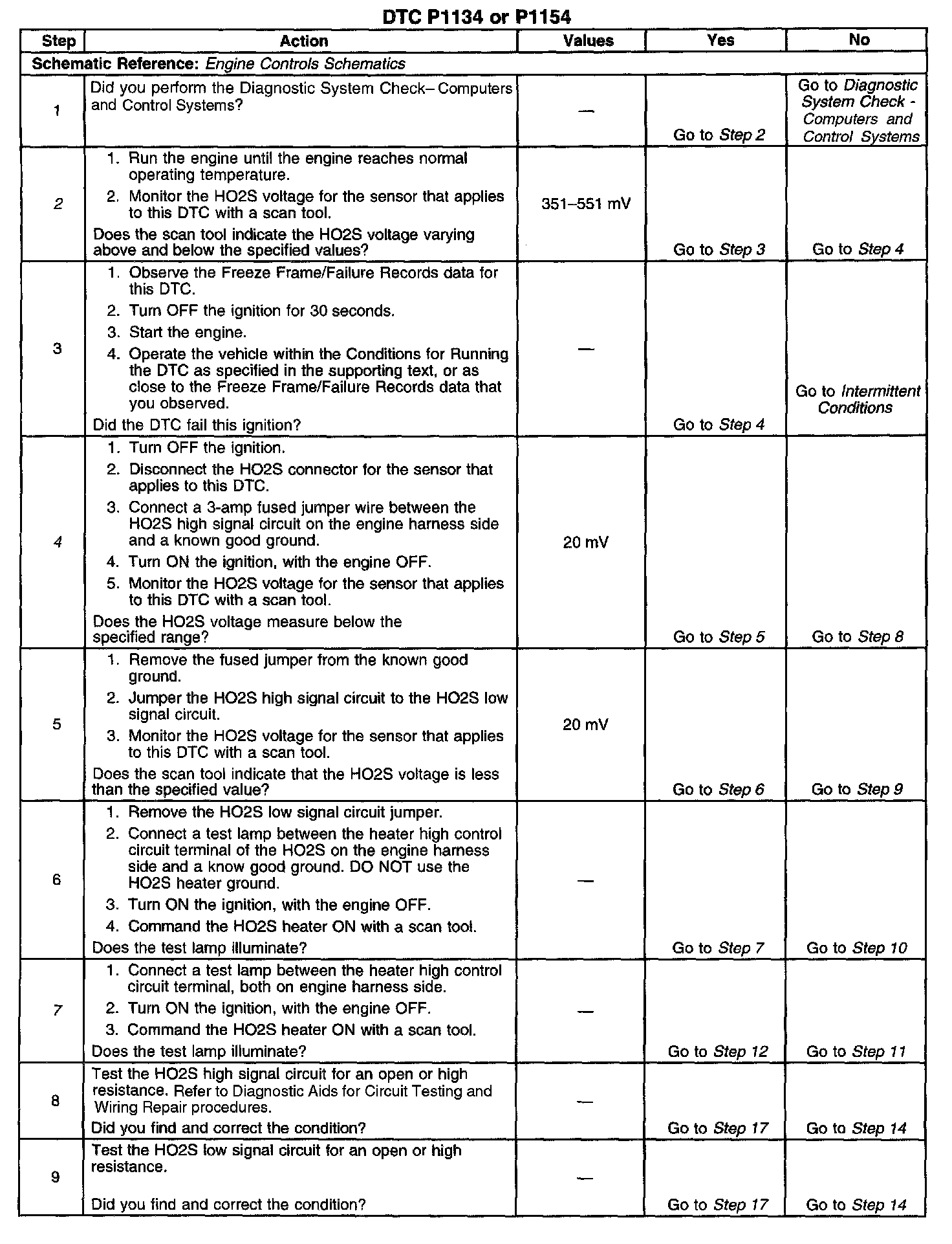 13. If the voltage observed in step 8 is less than the range specified, a short between the high and low circuits or a short between the high circuit and ground is indicated. With the HO2S and the PCM disconnected the resistance between the high and low circuits and the resistance between the high circuit and ground should measure infinite. If the voltage observed in Step 8 is more than the range specified a short between the high circuit and a voltage source is indicated.