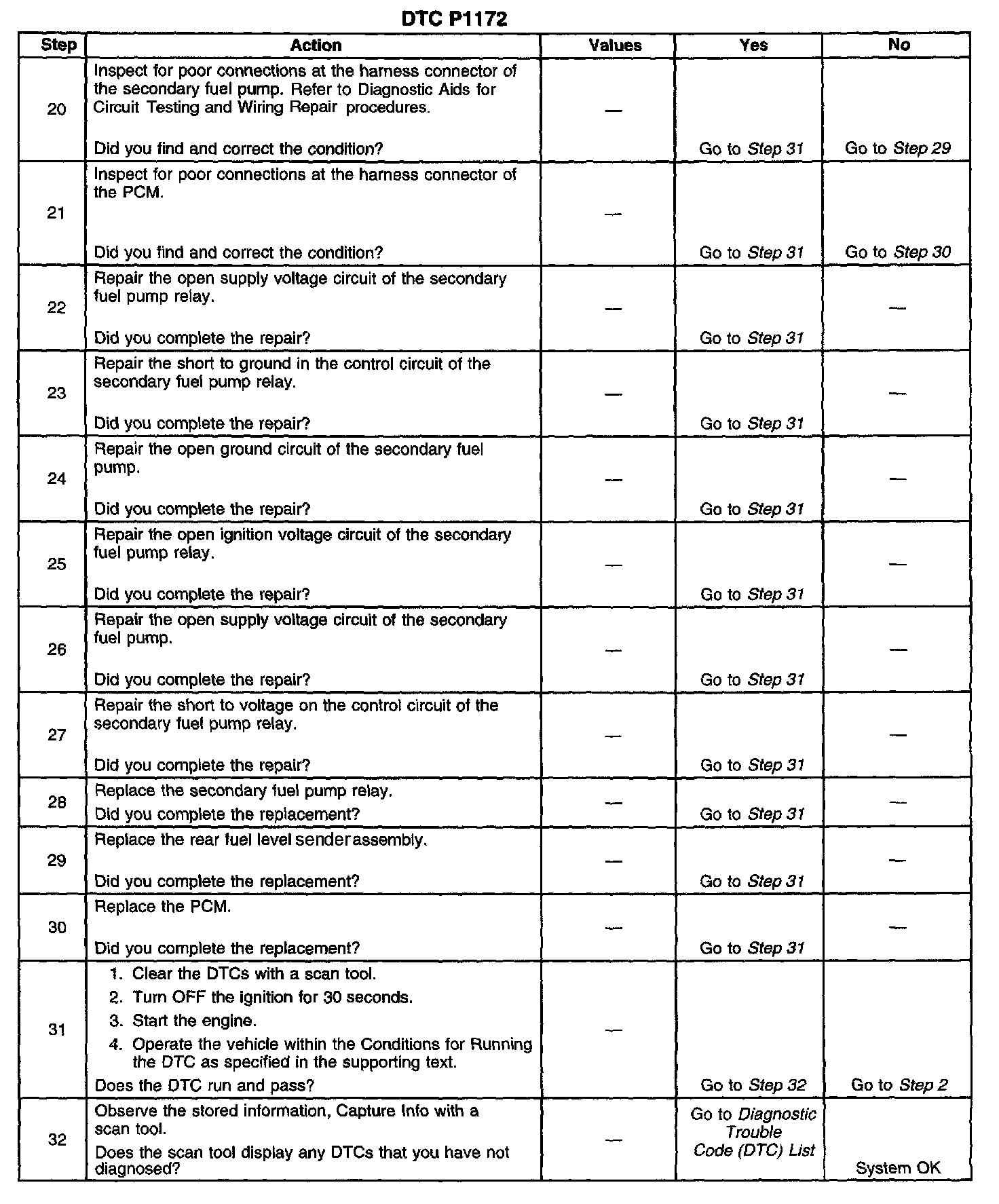 8. This step tests for a short to ground on the control circuit of the secondary fuel pump relay. If the test lamp illuminates, a short to ground is indicated.