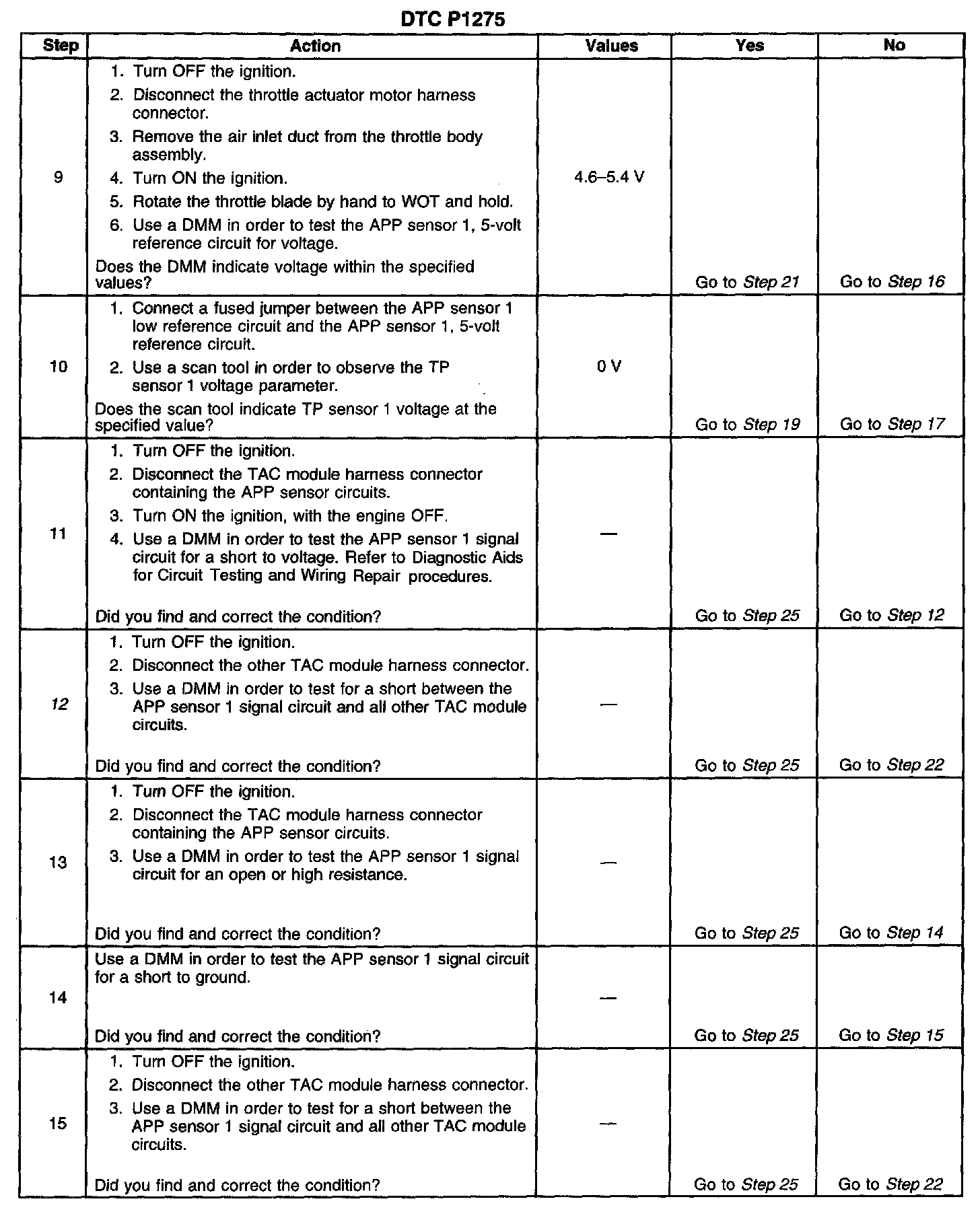 ^ When the TAC module detects throttle movement with a DTC P1275 set, a DTC P1276 also sets.