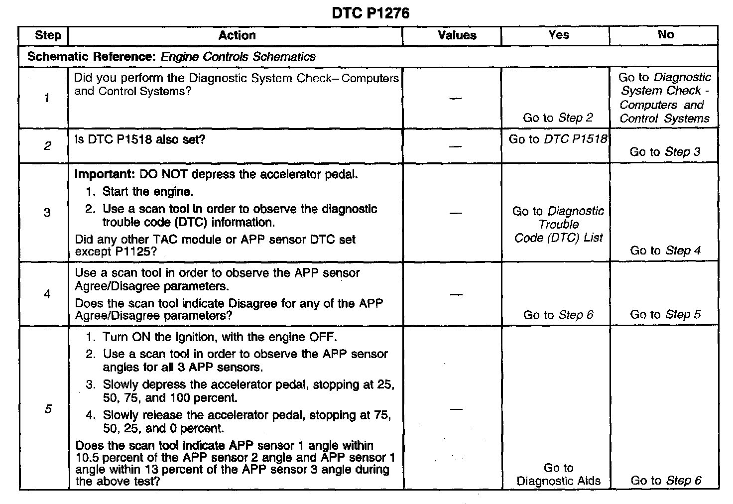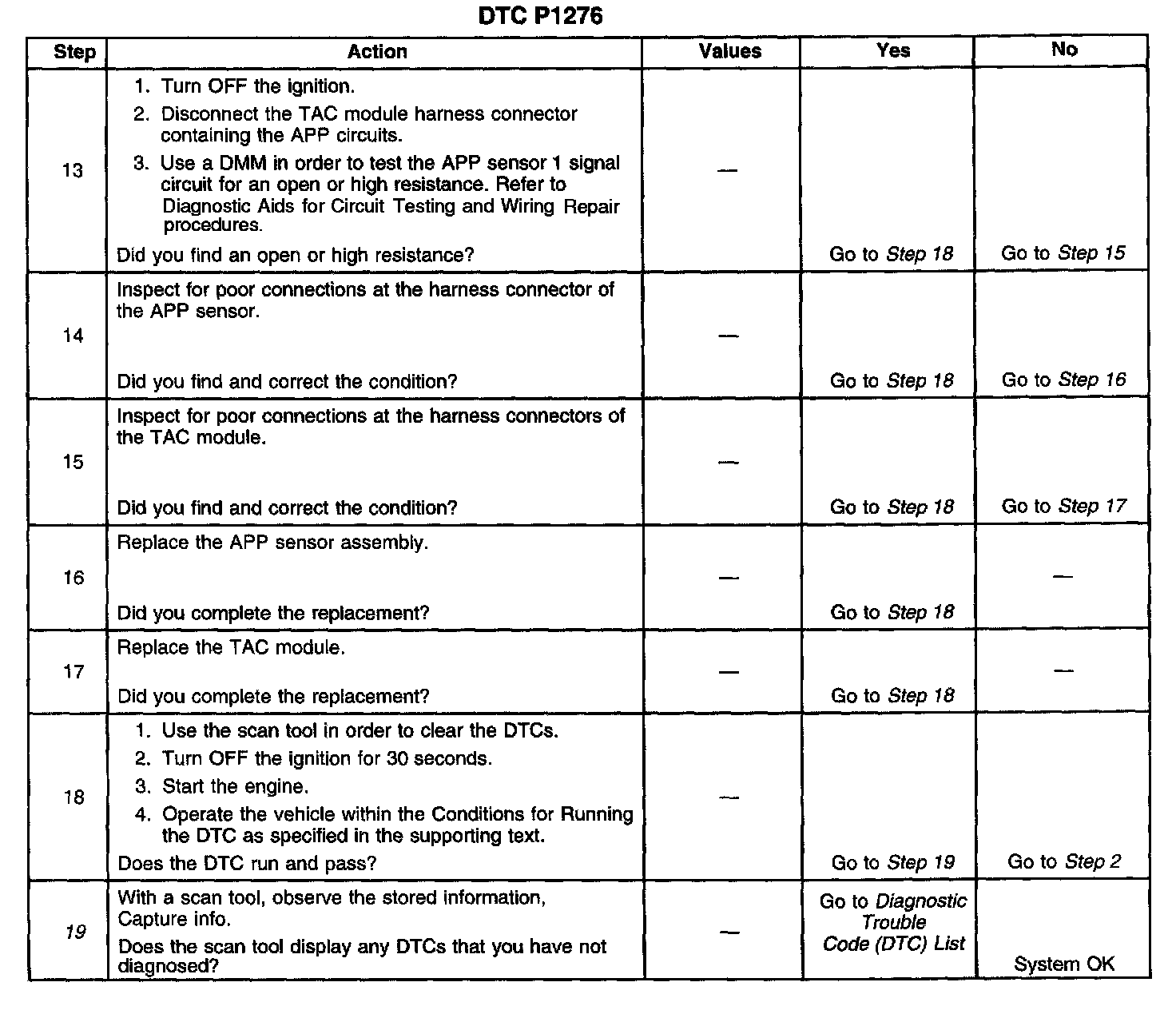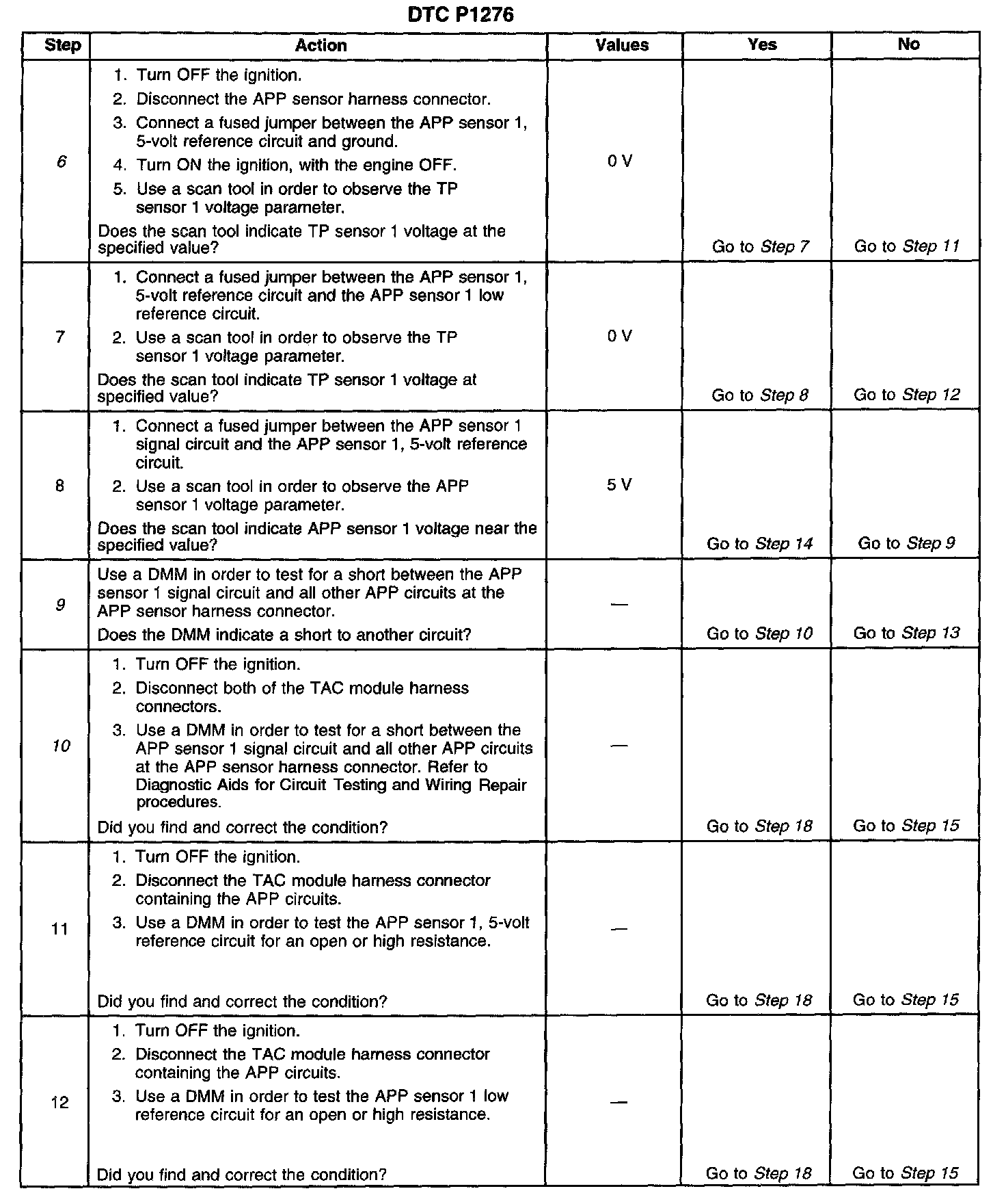 ^ When the TAC module detects throttle movement with a DTC P1275 set, a DTC P1276 also sets.