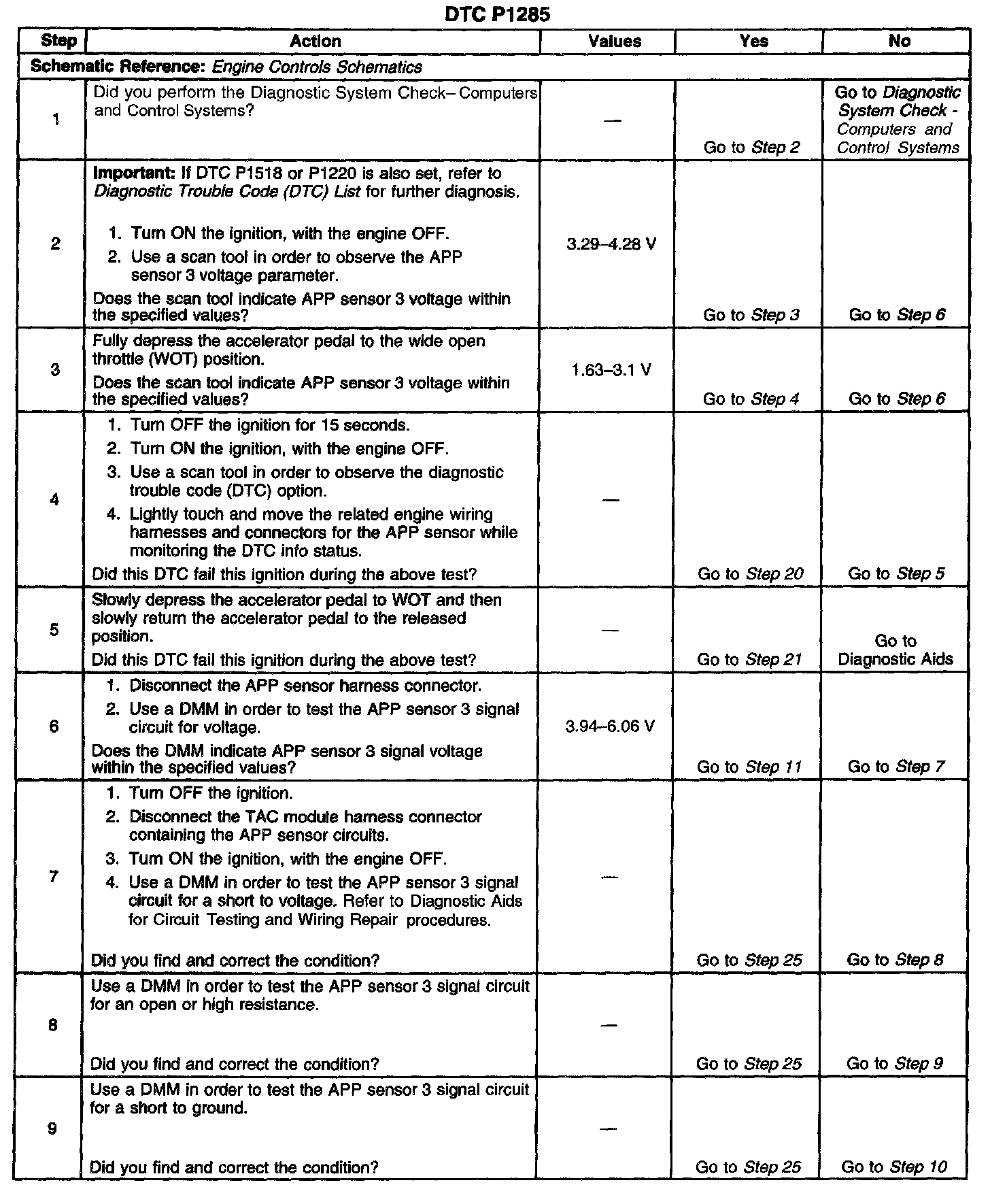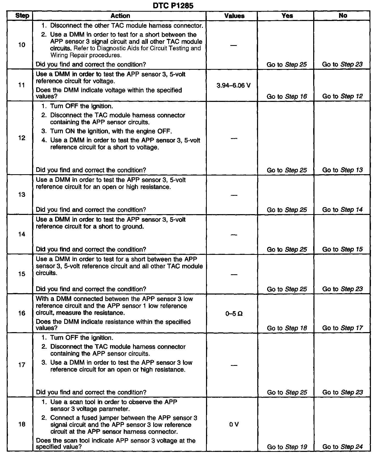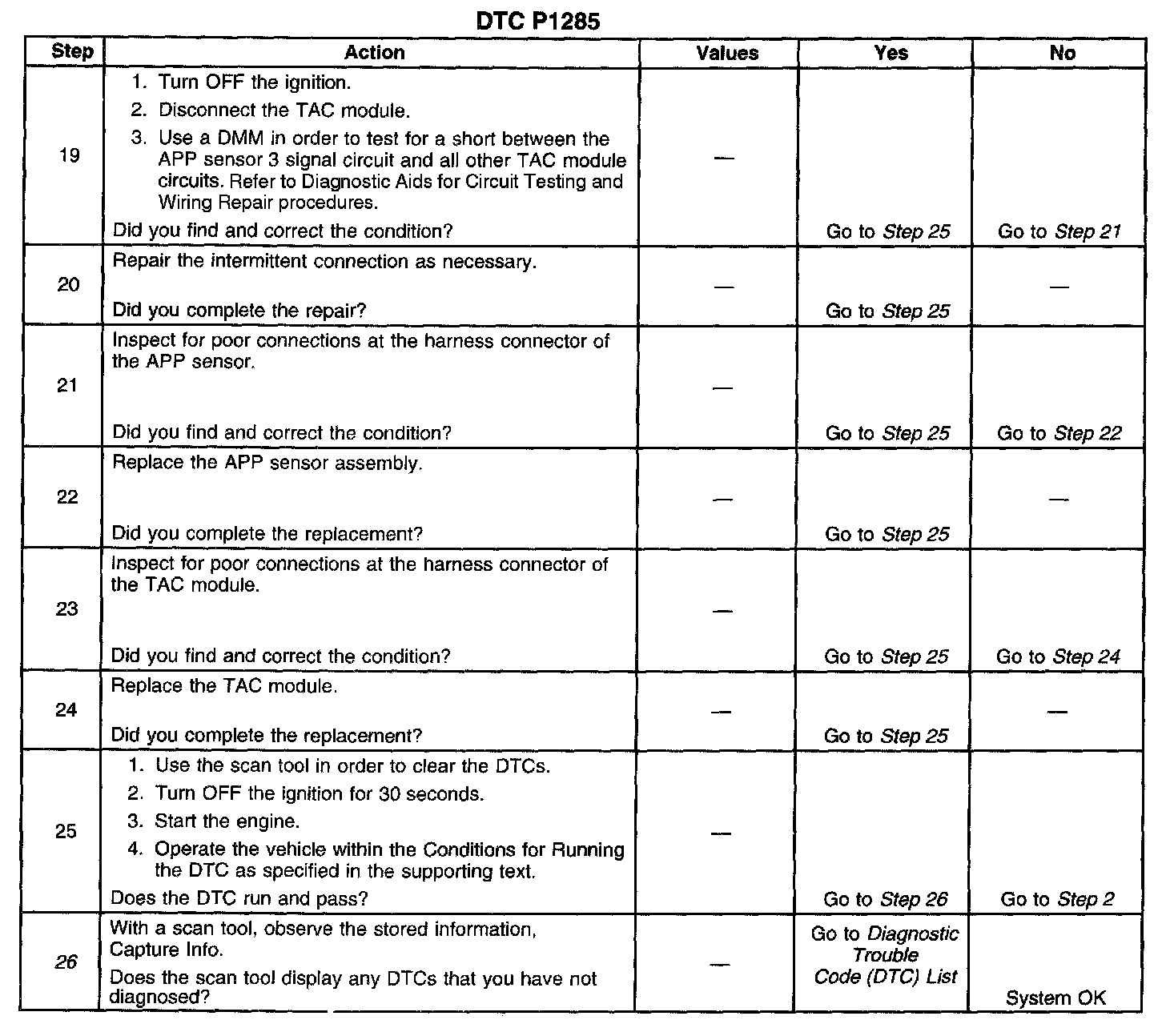 ^ When the TAC module detects throttle movement with a DTC P1285 set, a DTC P1286 also sets.