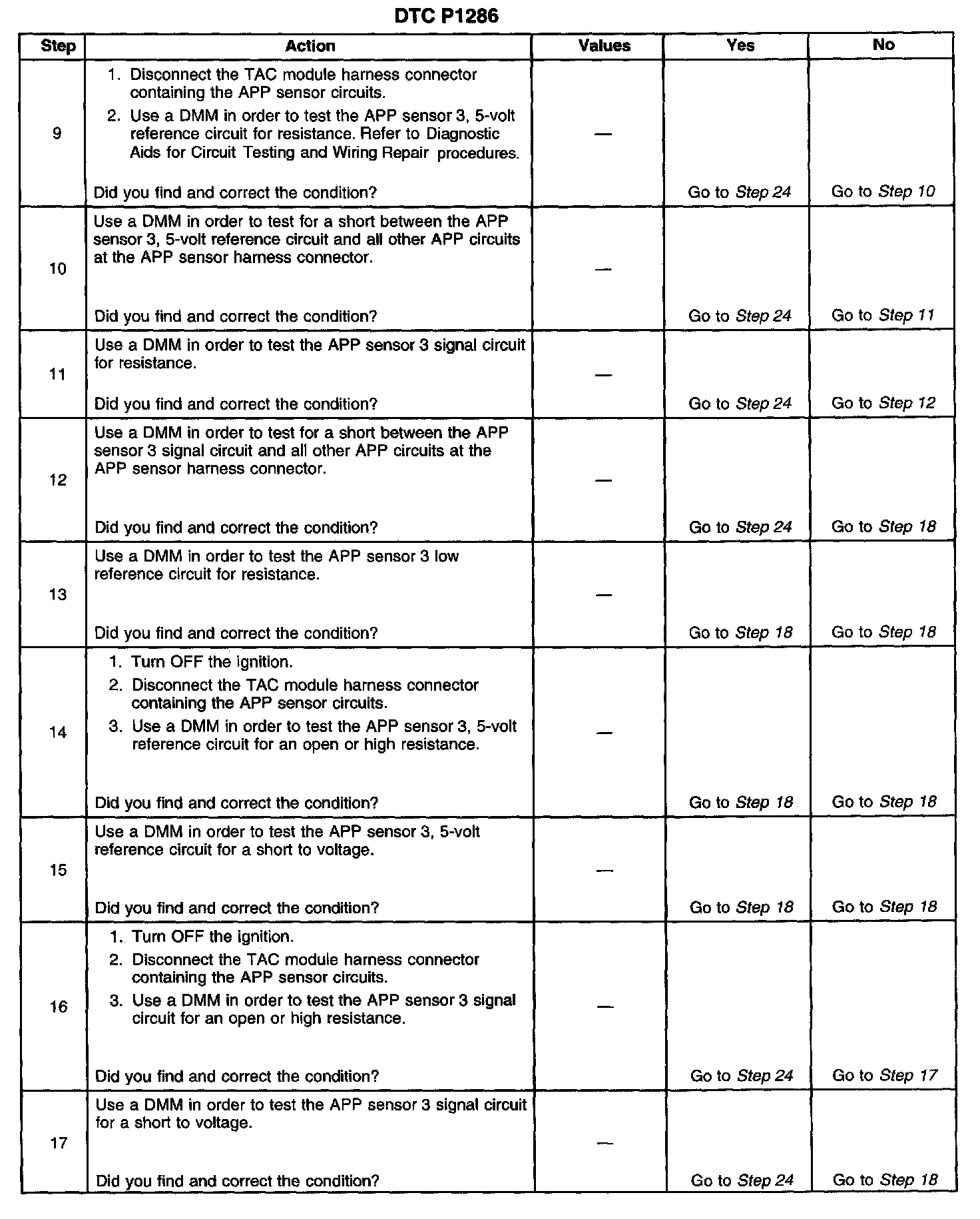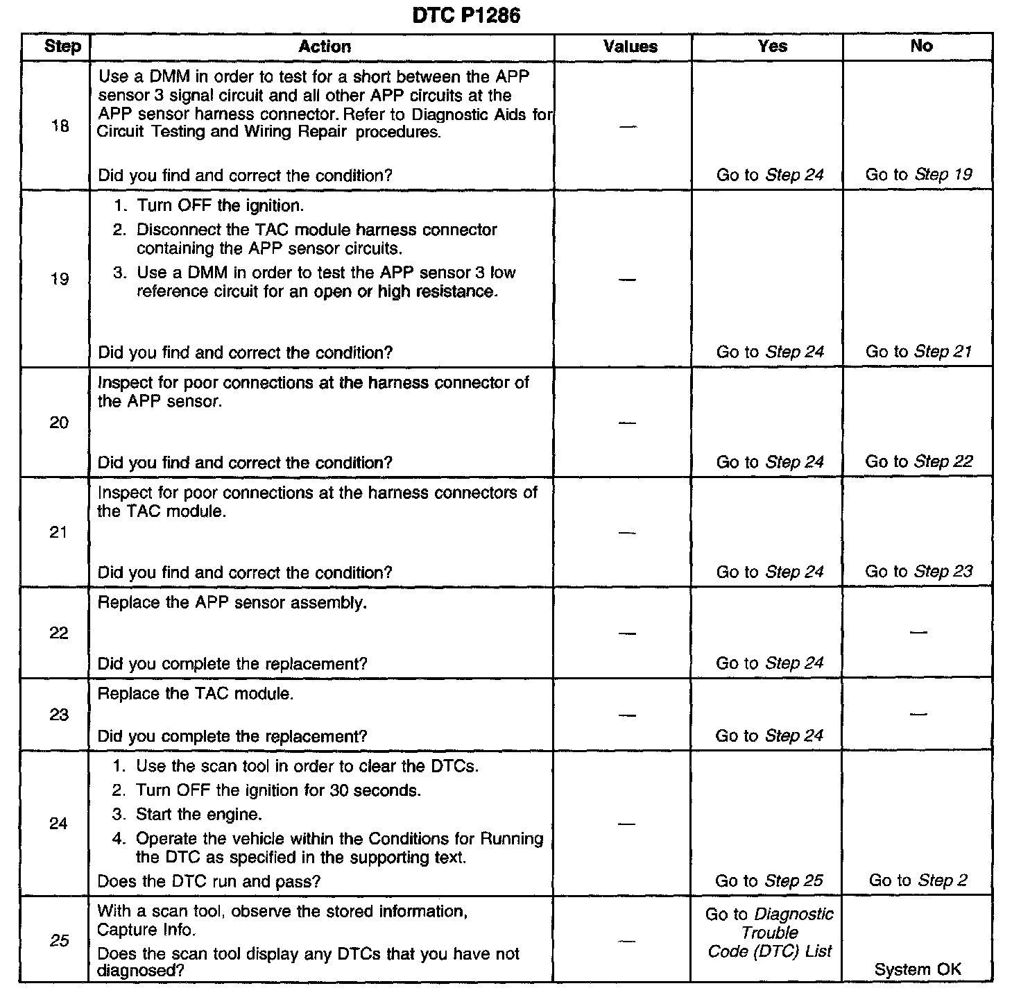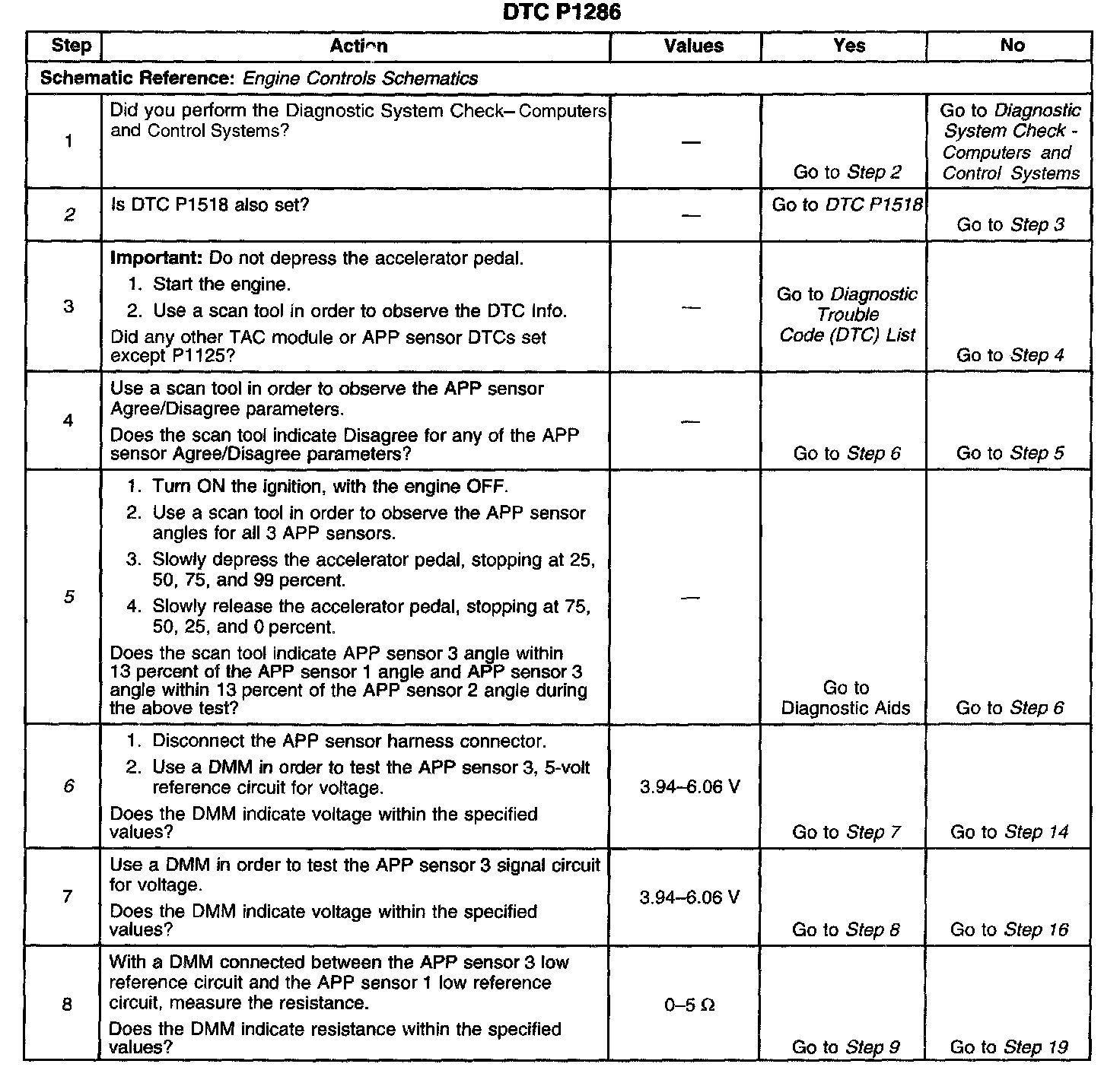 ^ When the TAC module detects throttle movement with a DTC P1285 set, a DTC P1286 also sets.