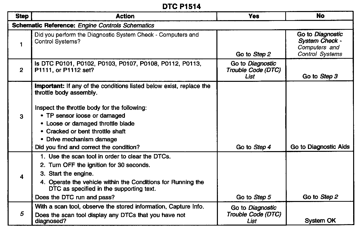 ^ Physically/visually inspect the throttle body assembly and correct any problems that you observe. Manually move the throttle blade from closed to wide open throttle (WOT). You should not need to use excessive force. The throttle blade should move smoothly through the full range and should return to a slightly open position on the throttle blades own.