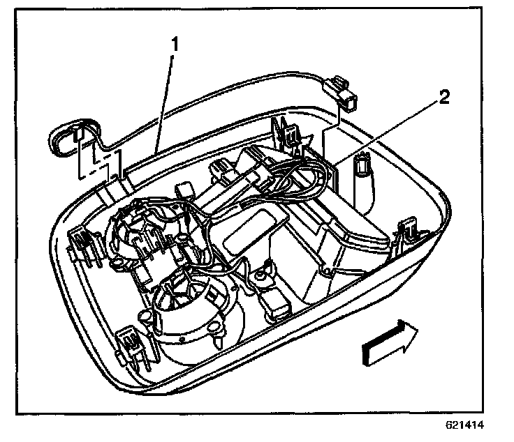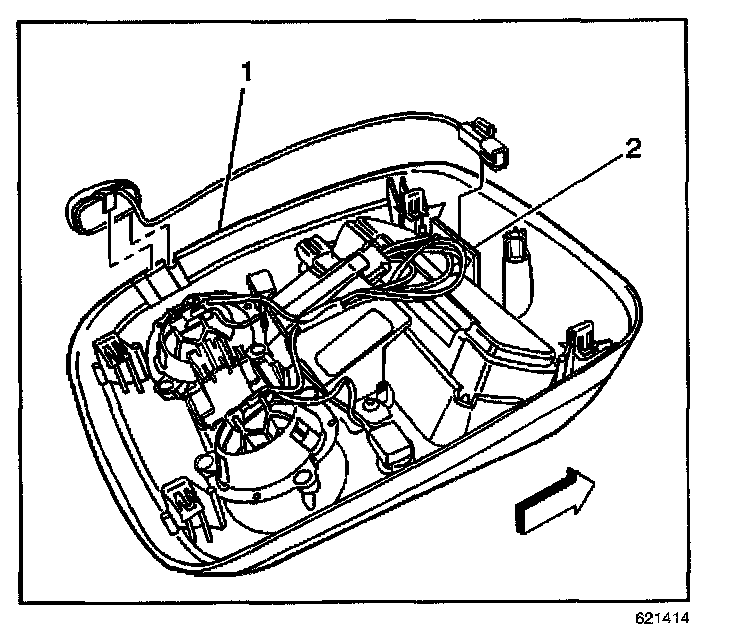 1. Mount the microphone (1) to the overhead console at the left rear corner of the overhead console.