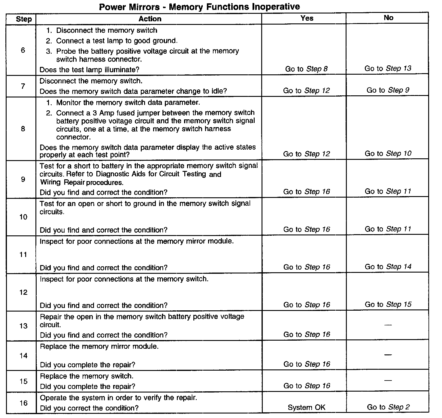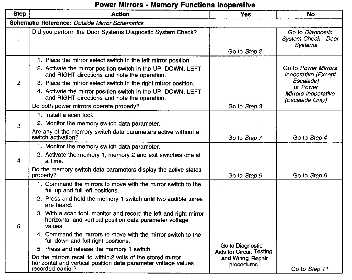 Power Mirrors - Memory Functions Inoperative