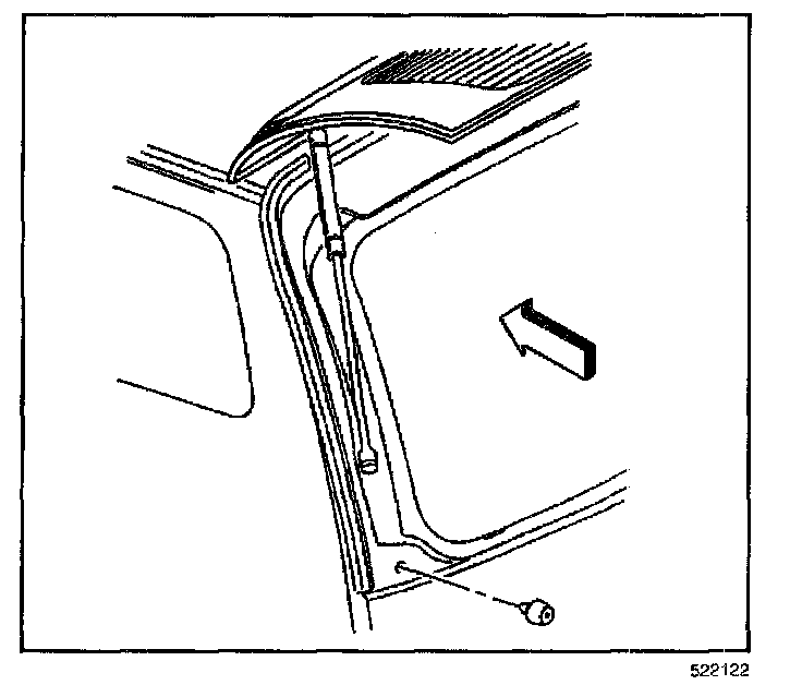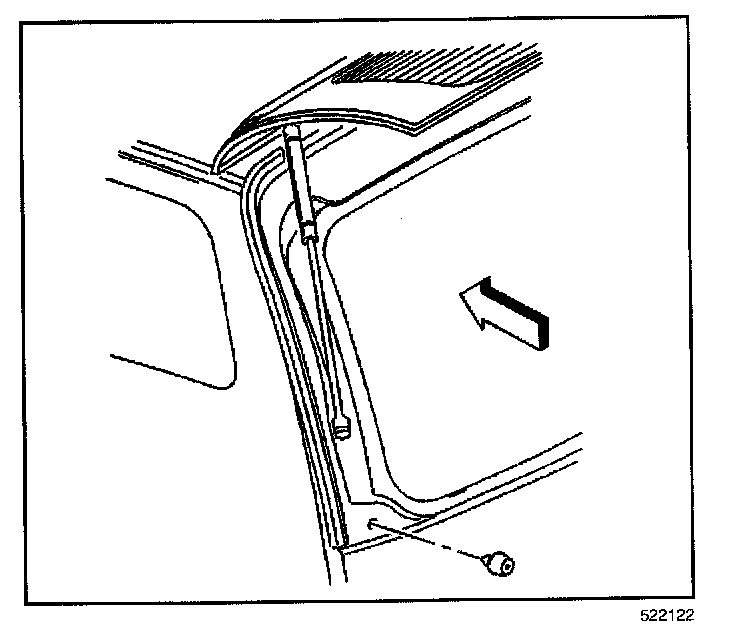 1. Push on the end of the strut in order to install the lower end of the liftgate window strut to the ball stud on the liftgate.
