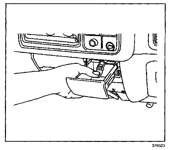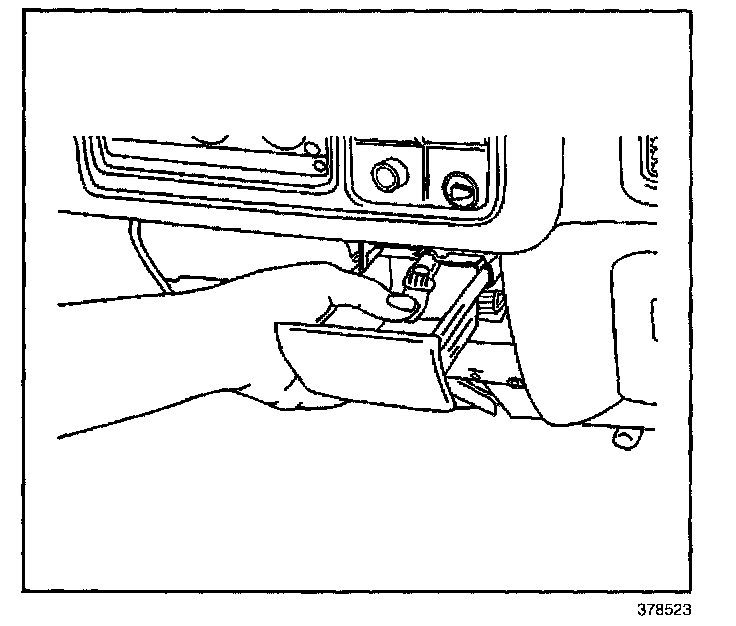 REMOVAL PROCEDURE1. Remove the ashtray from the instrument panel (IP) by depressing the tab and sliding the ashtray rearward.