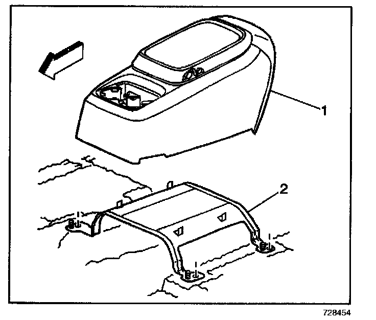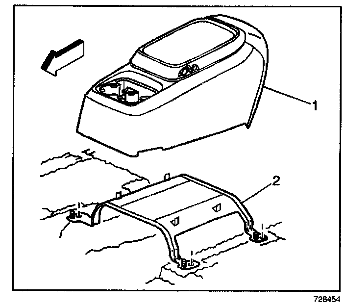 2. Remove the center console (1) from the bracket.