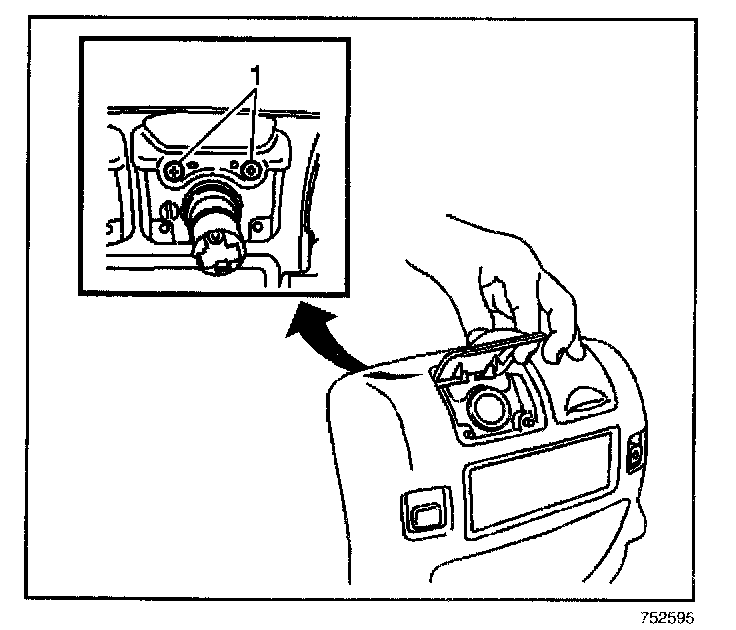 5. Remove the 2 screws (1) retaining the power outlet cover to the console end panel.