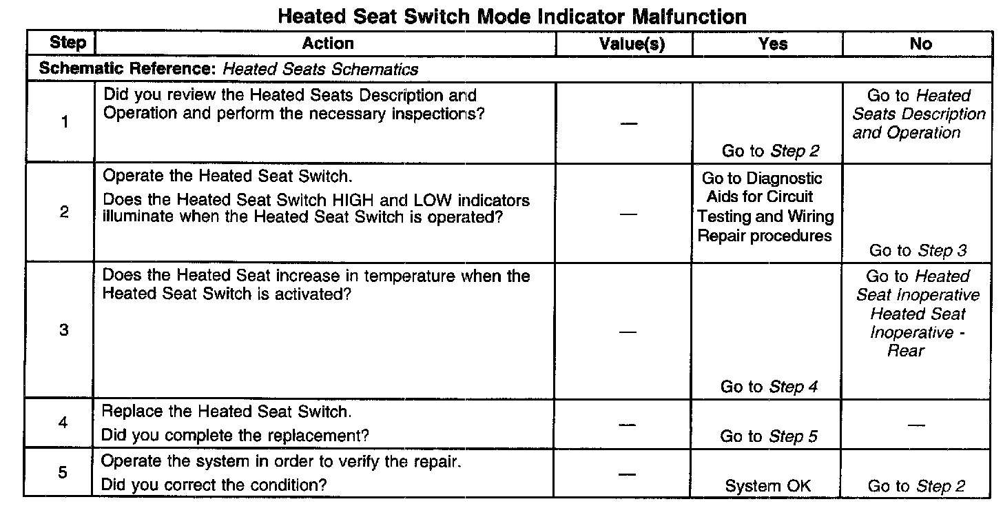 Heated Seat Switch Mode Indicator Malfunction