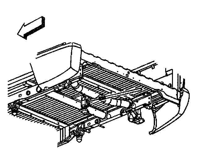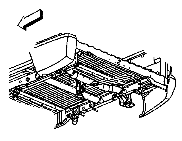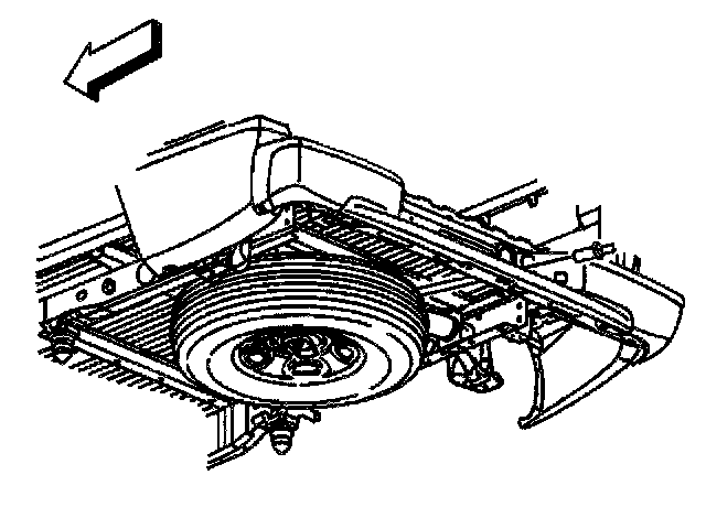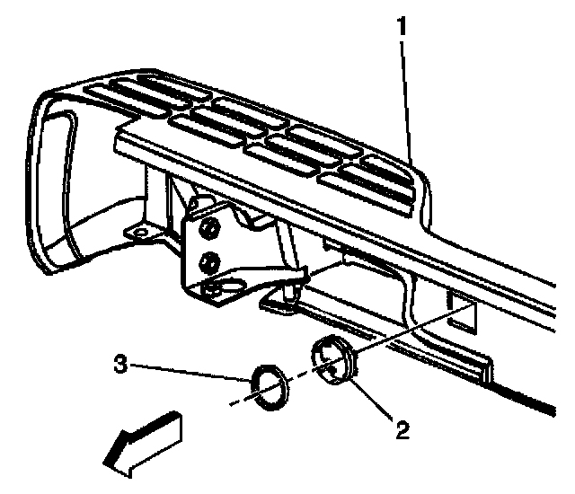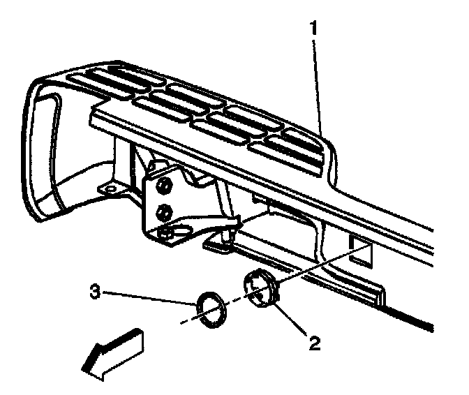 4. Remove the spare tire wheel hoist guide retaining clips from the bumper (1).