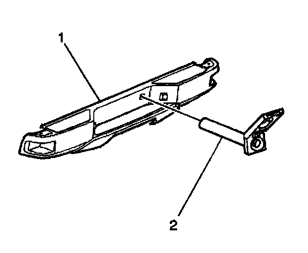 5. Remove the spare wheel hoist shaft guide (2) from the bumper.
