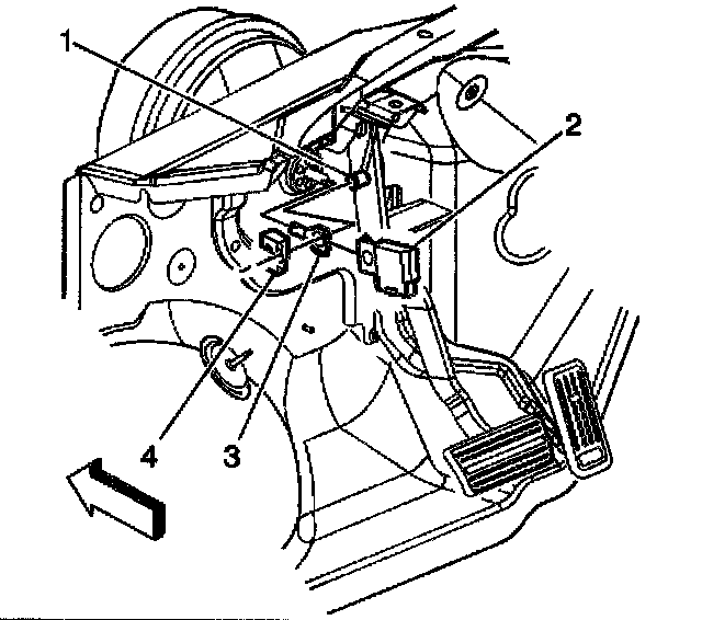 4. Install the pushrod (3) and the stoplamp switch (2) to the brake pedal pin (1).