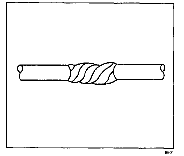 2. Unwrap the tape. Do not remove the tape. Use the tape in order to rewrap the twisted conductors after the splice is made.