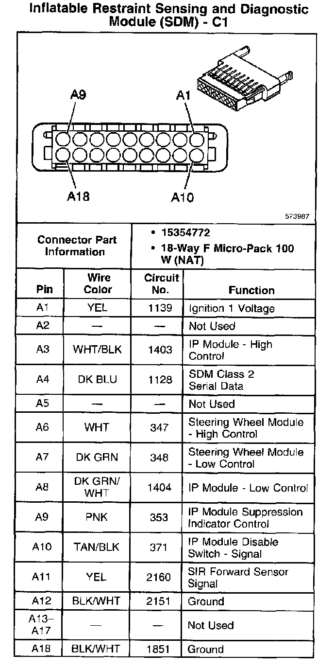 Inflatable Restraint Sensing and Diagnostic Module (SDM) - C1