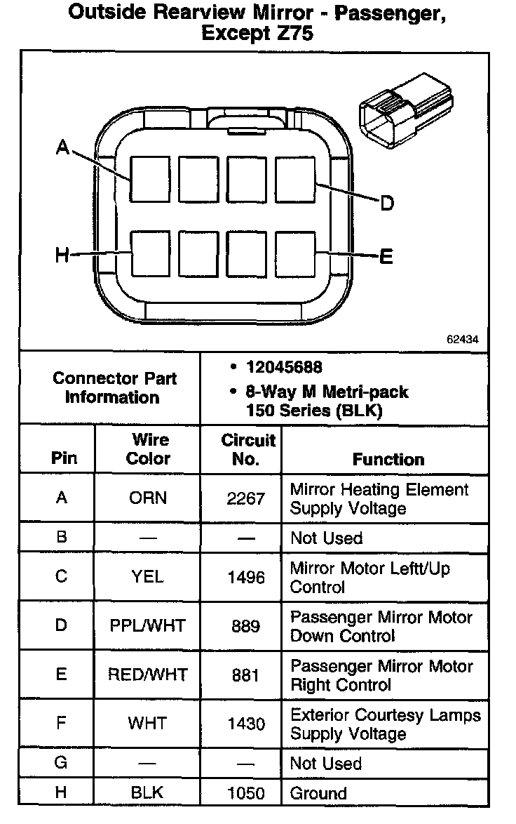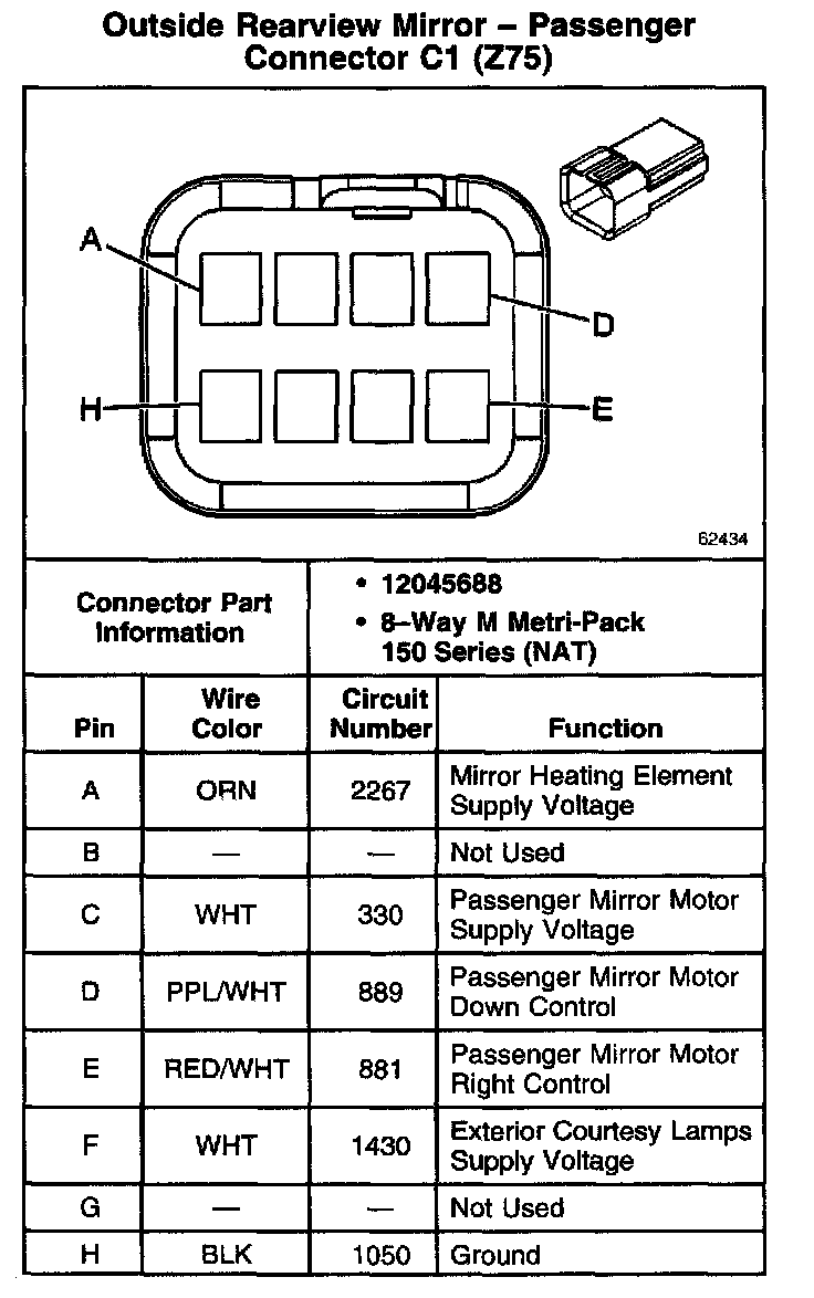 Outside Rearview Mirror - Passenger Connector C1 (Z75):