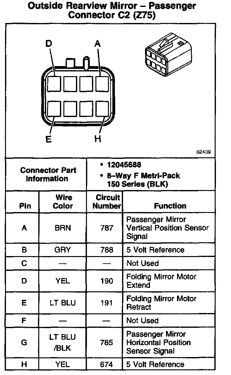 Outside Rearview Mirror - Passenger Connector C2 (Z75):