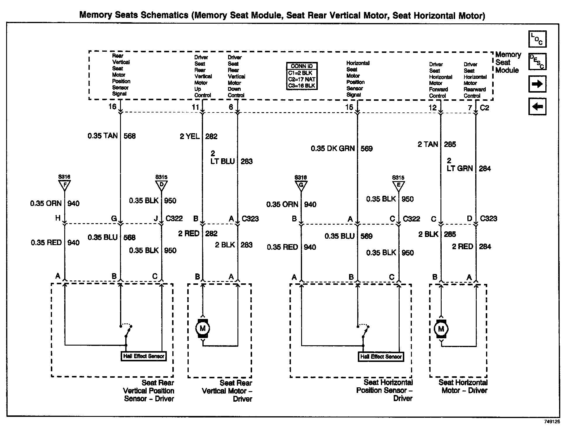 Memory Seats Schematics (Memory Seat Module, Seat Rear Vertical Motor, Seat Horizontal Motor):