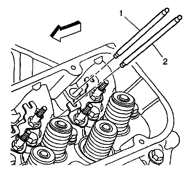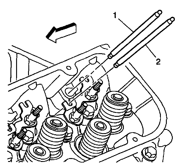 Important: The exhaust valve pushrods (2) are longer than the intake valve pushrods (1).