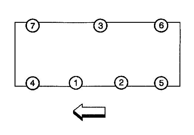 4. Tighten the valve rocker arm cover bolts in the sequence shown, using two passes.