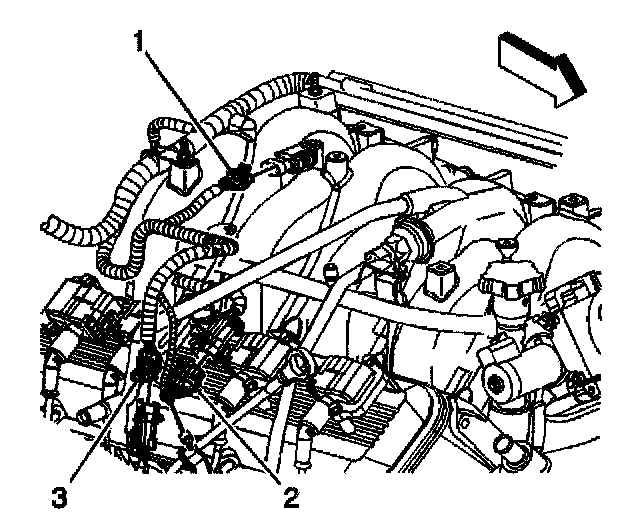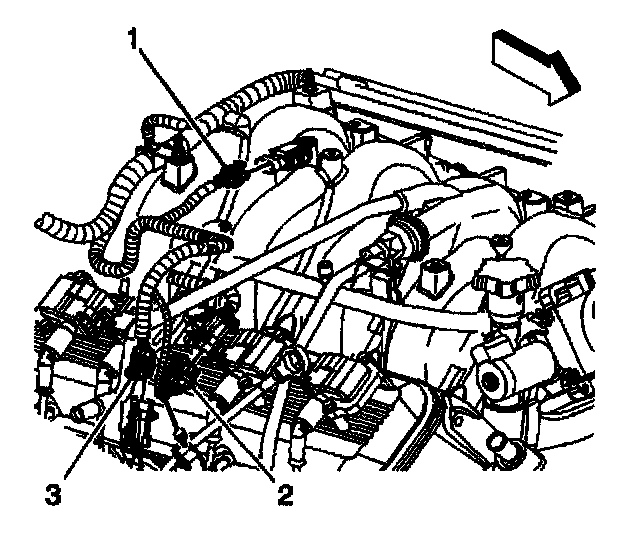 6. Disconnect the engine coolant temperature (ECT) sensor electrical connector (3).