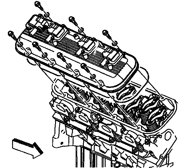 8. Remove the valve rocker arm cover bolts.