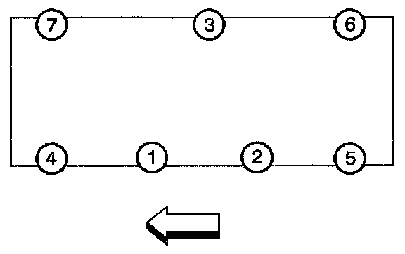 4. Tighten the valve rocker arm cover bolts in the sequence shown, using two passes.