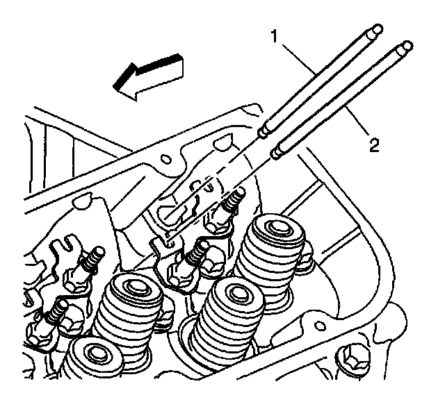 The exhaust valve push rods (2) are longer than the intake valve push rods (1).