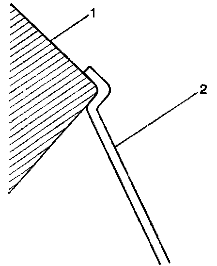 2. Ensure the splash shield (2) snap fits between the cylinder heads (1).